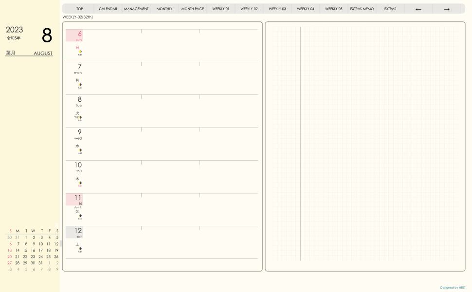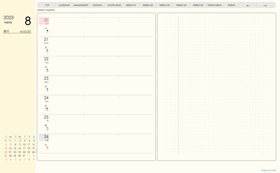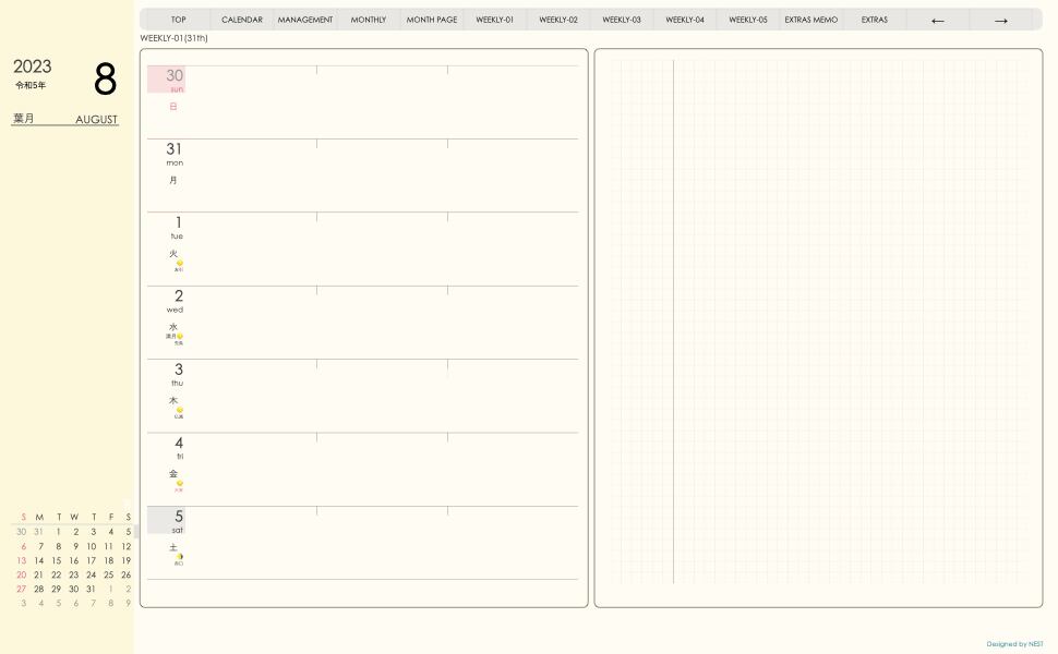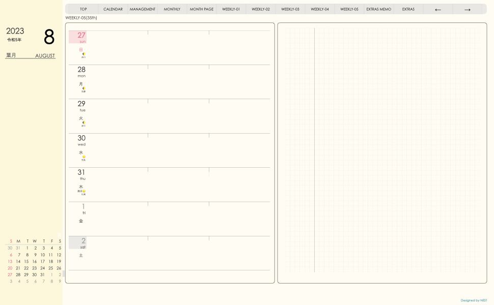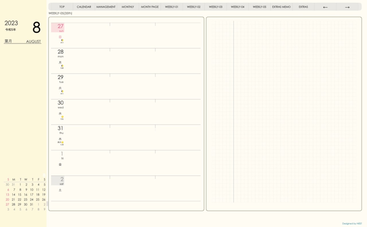 ・ウィークリーは 週間予定+メモで左側に週間予定