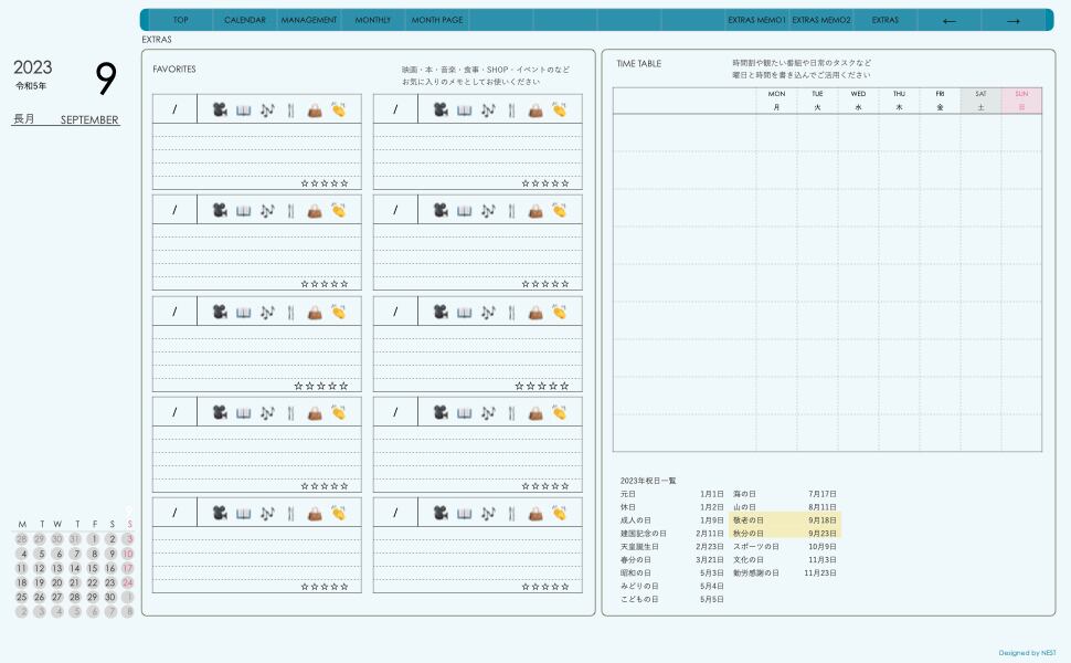 ・マンスリーメモ