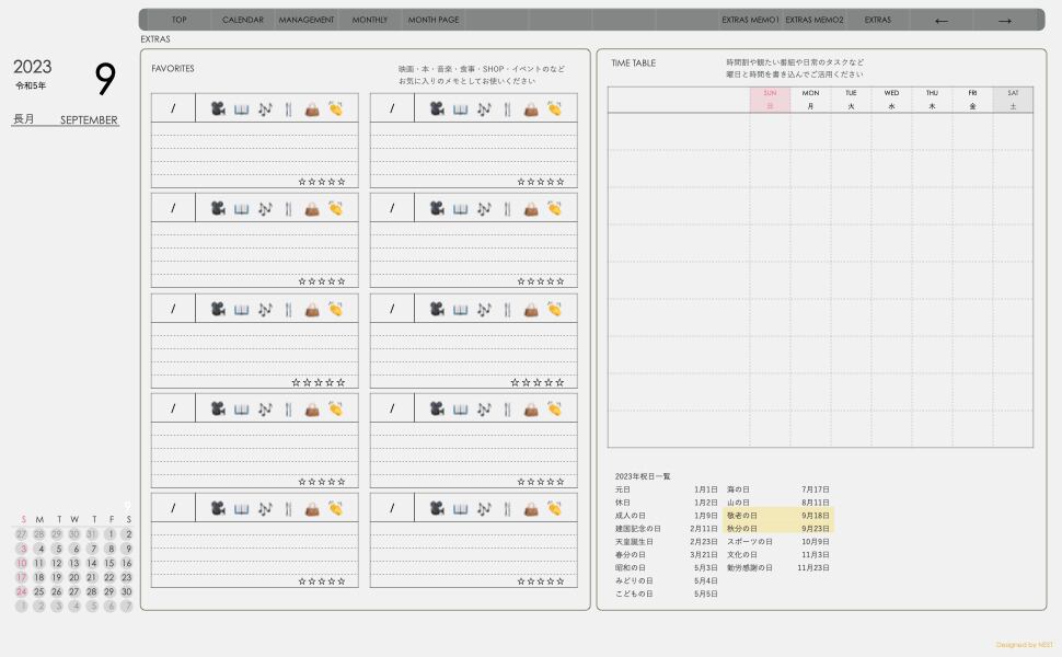 ・マンスリーメモ