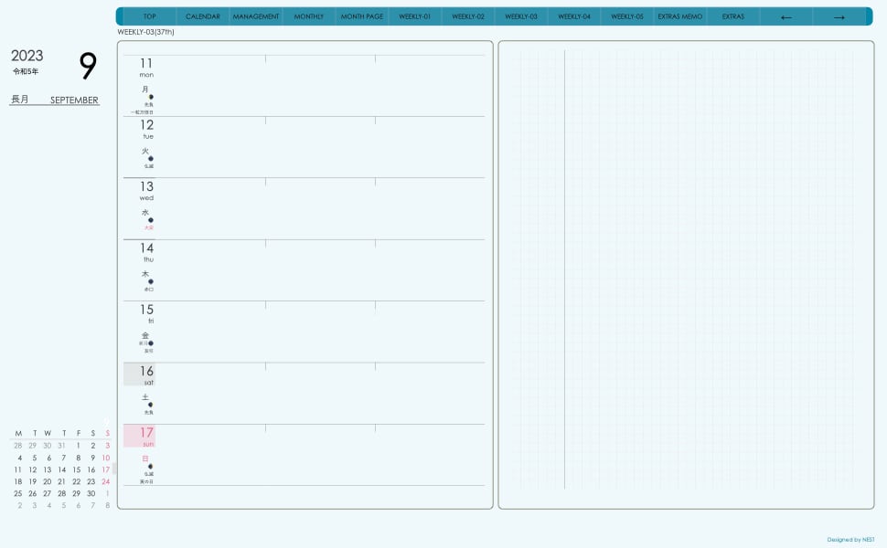 週間予定+メモで 左側に週間予定、右側に方眼メモという