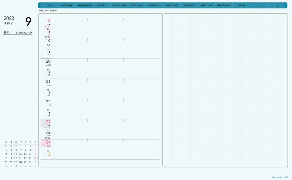 **デジタル手帖(week-leftシリーズ)2309月版**が登場!