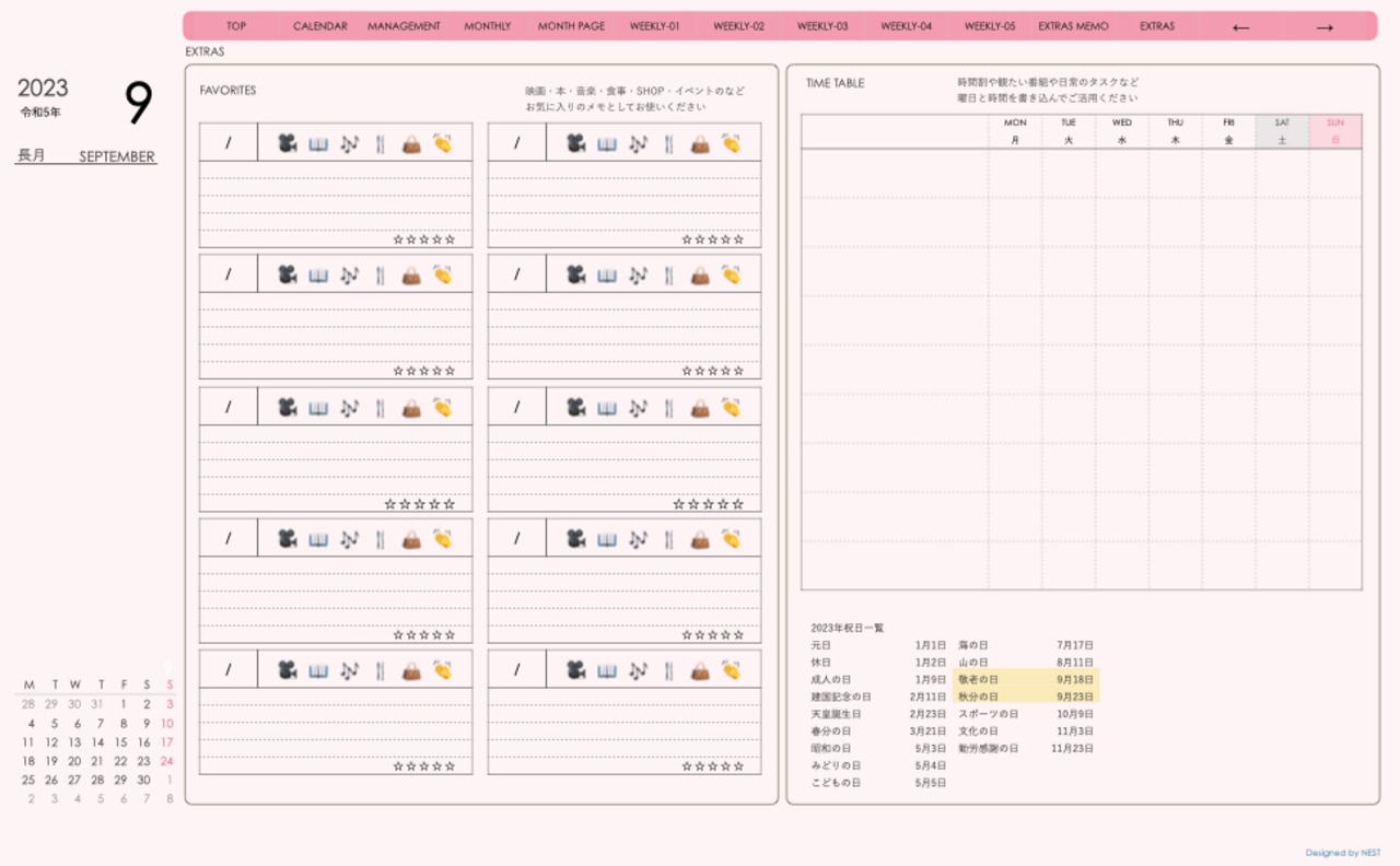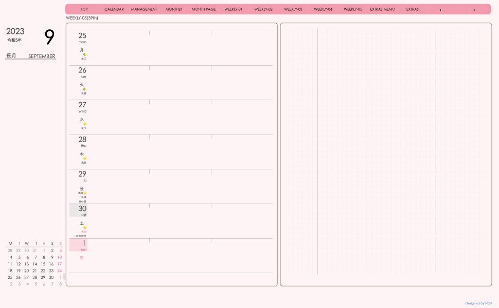 **デジタル手帖(week-leftシリーズ)2309月版**が登場!