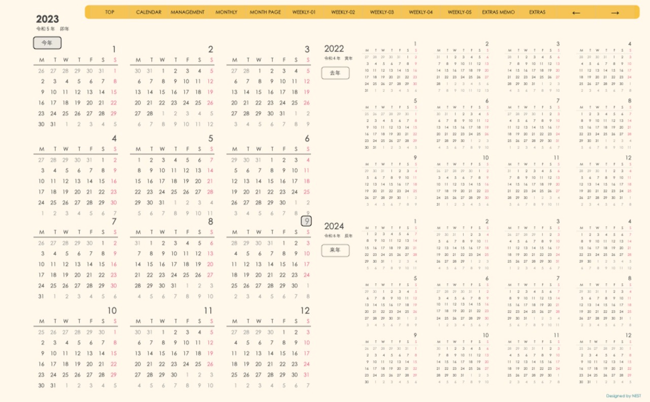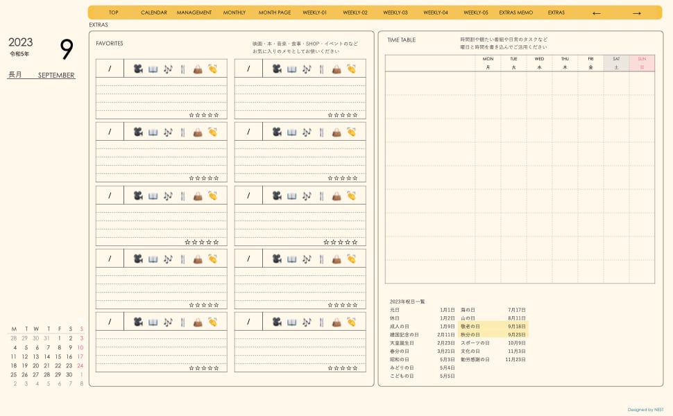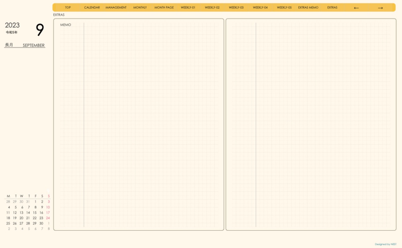 予定の把握とメモの両方が使えるレイアウトとなっています。