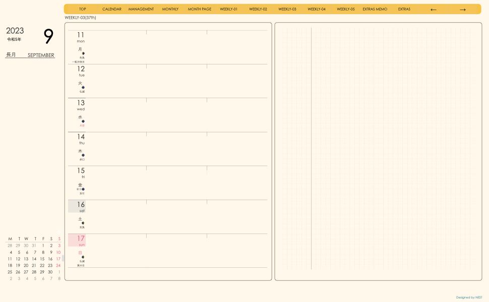 **デジタル手帖(week-leftシリーズ)2309月版**が登場!