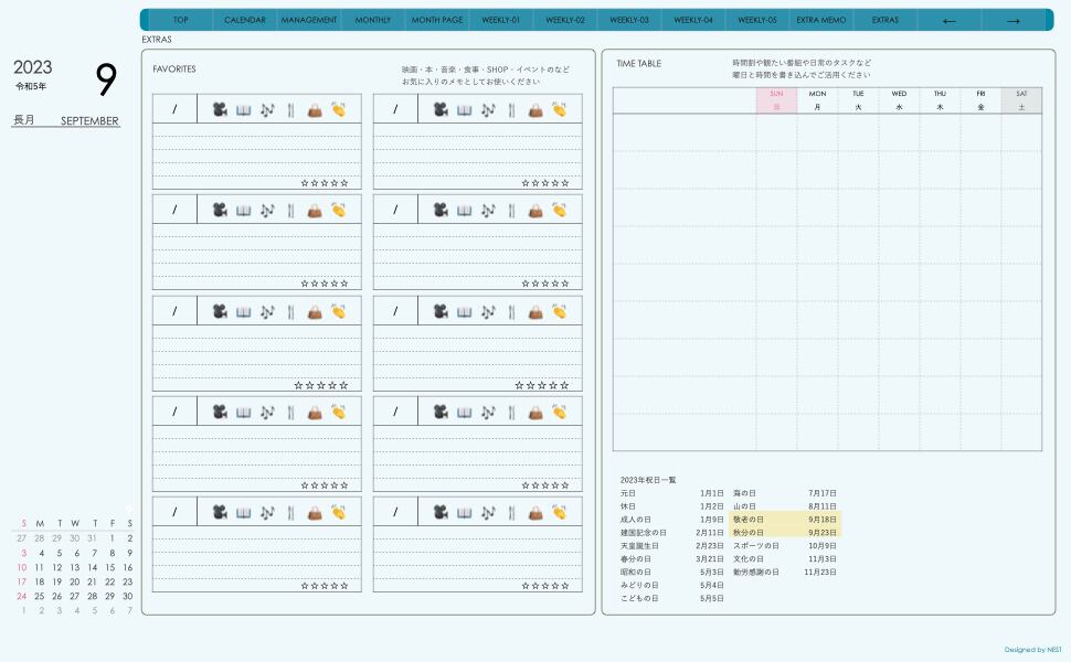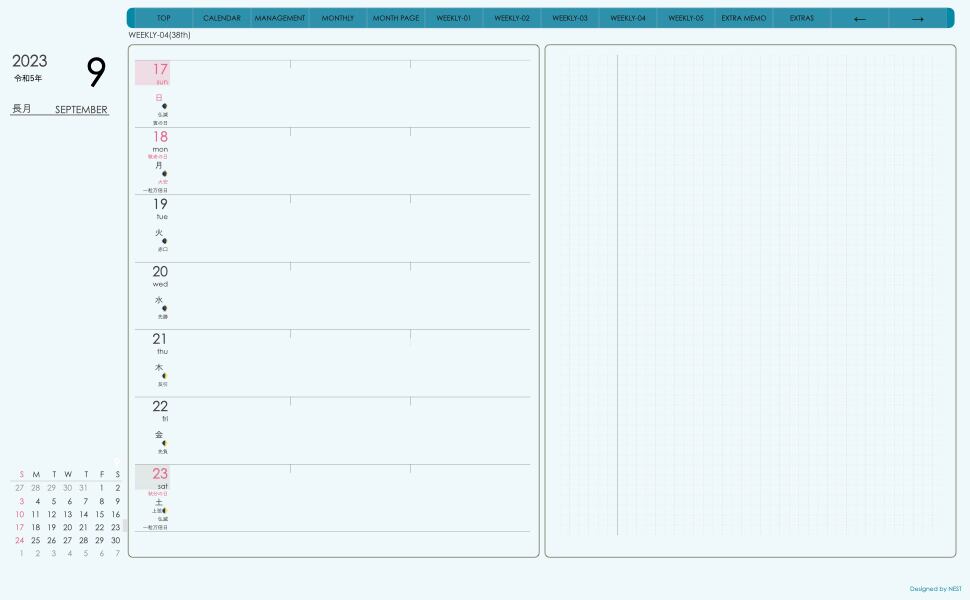 デジタル手帖(week-leftシリーズ)2309月版が登場!
