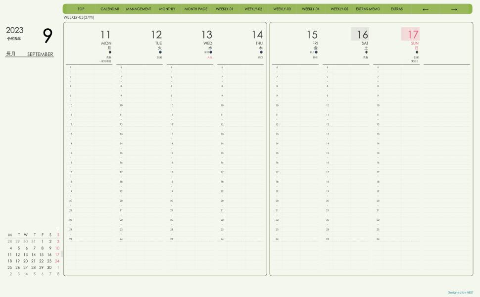 **デジタル手帖(week-verticalシリーズ)2309月版**が登場!