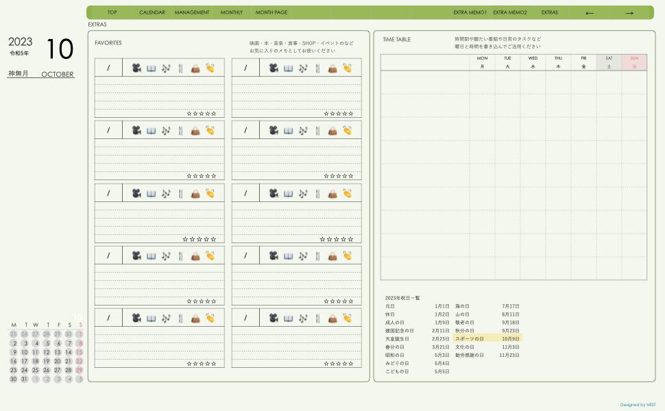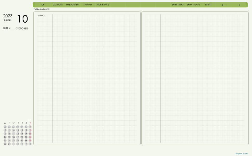 **デジタル手帖(dayシリーズ)月曜日始まり2023.10月版**が登場!