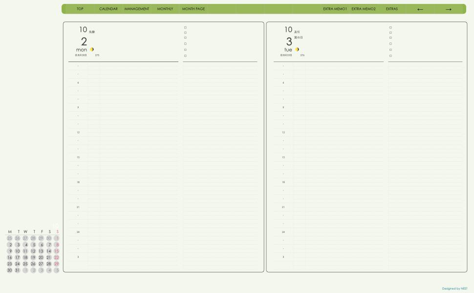 ミニカレンダーの日付の部分を押すとその日付のページへリンクとなり