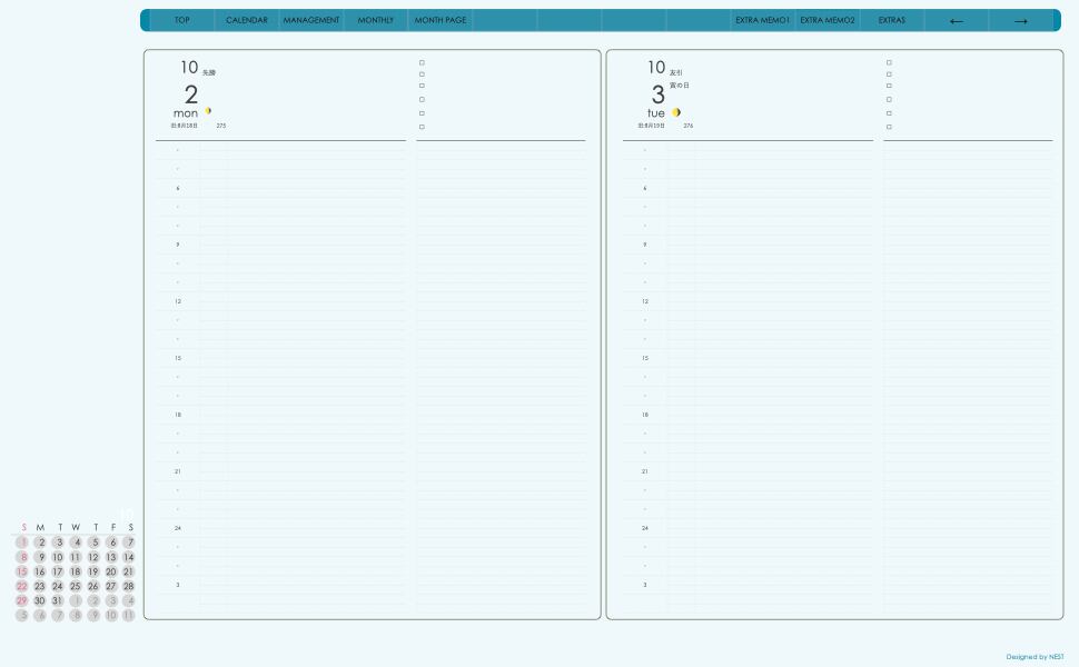 ミニカレンダーの日付の部分を押すとその日付のページへリンクとなり