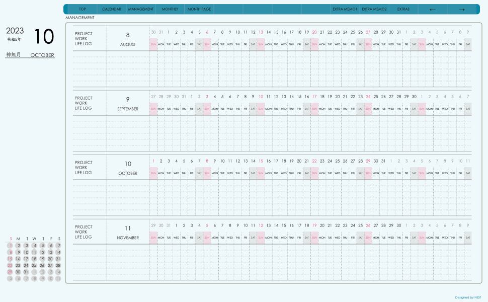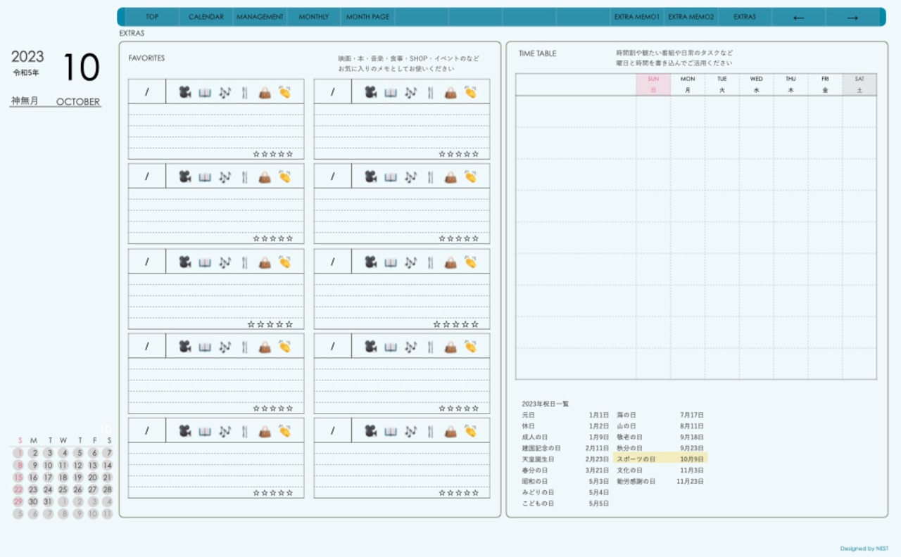 **デジタル手帖(dayシリーズ)日曜日始まり2023.10月版**が登場!