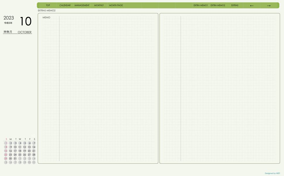 **デジタル手帖(dayシリーズ)日曜日始まり2023.10月版**が登場!