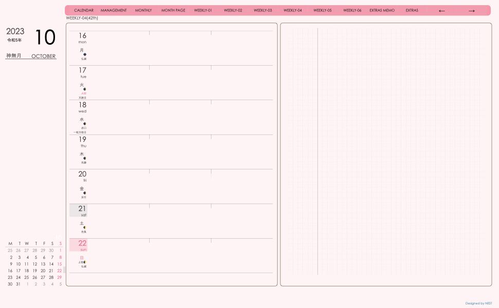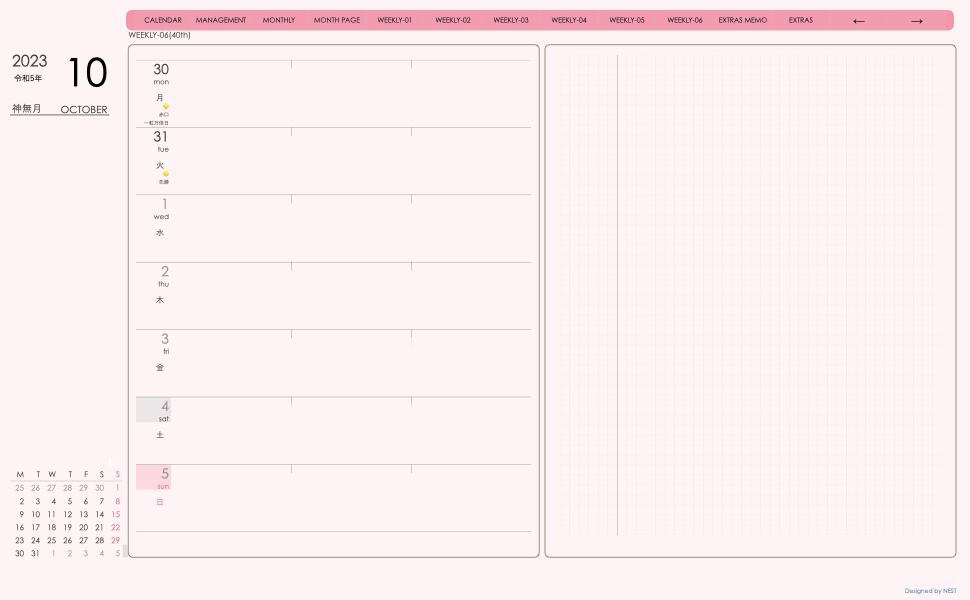 **デジタル手帖(week-leftシリーズ)月曜日始まり2023.10月版**が登場!