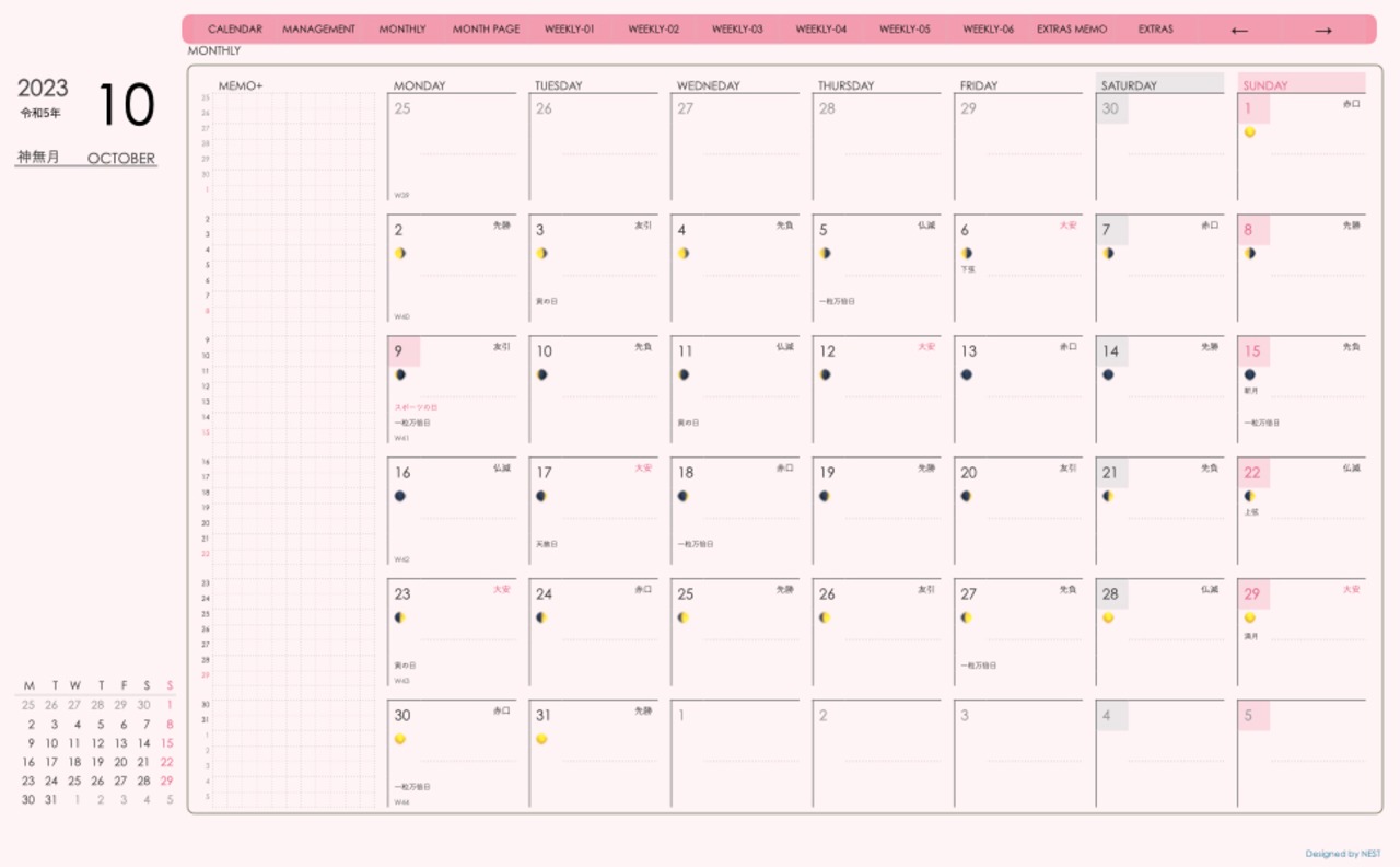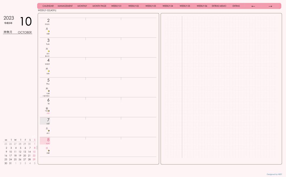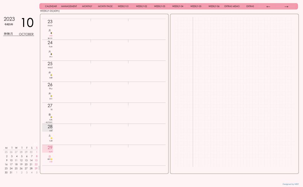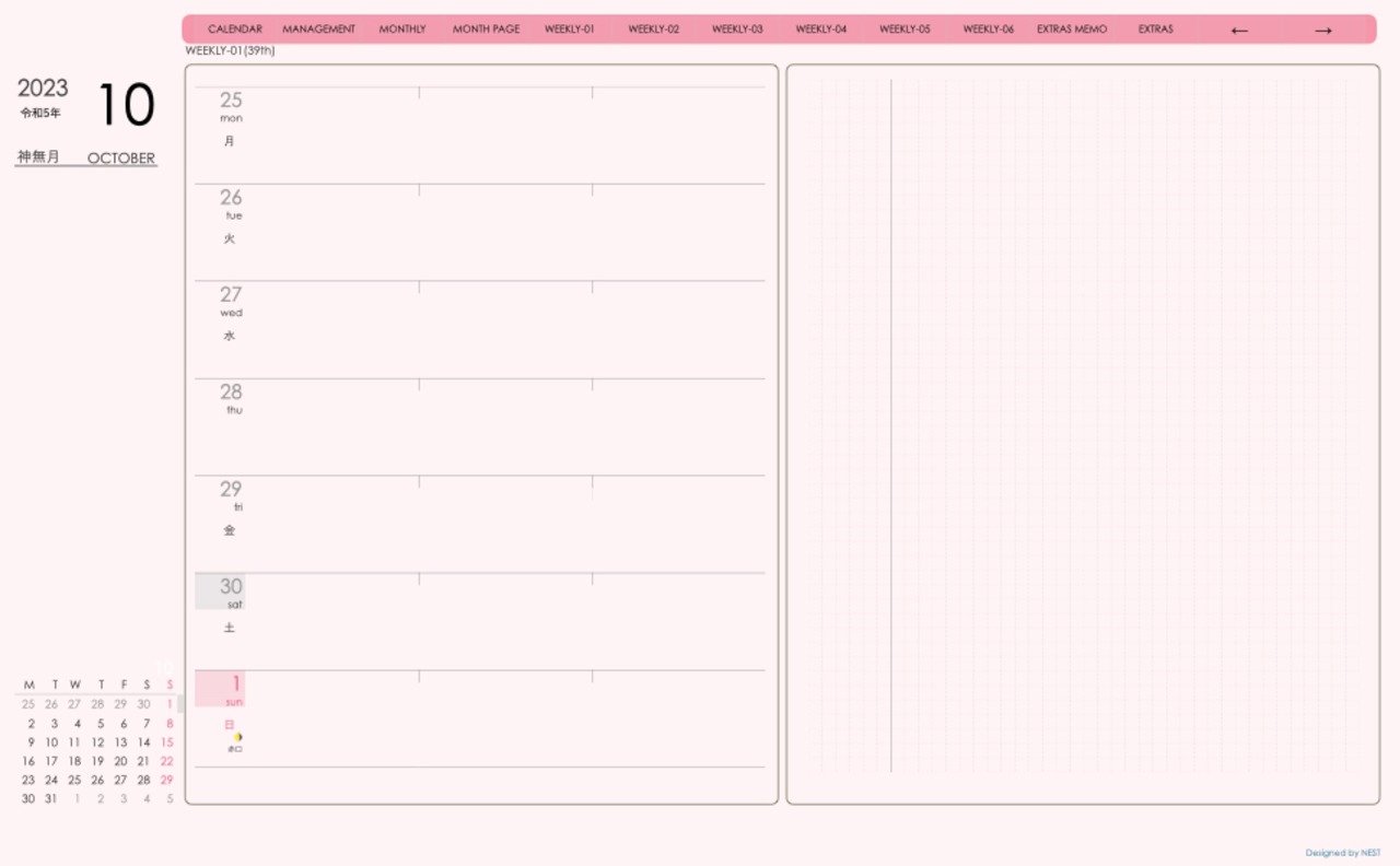 Digital Planner 2310Month week-left Edition