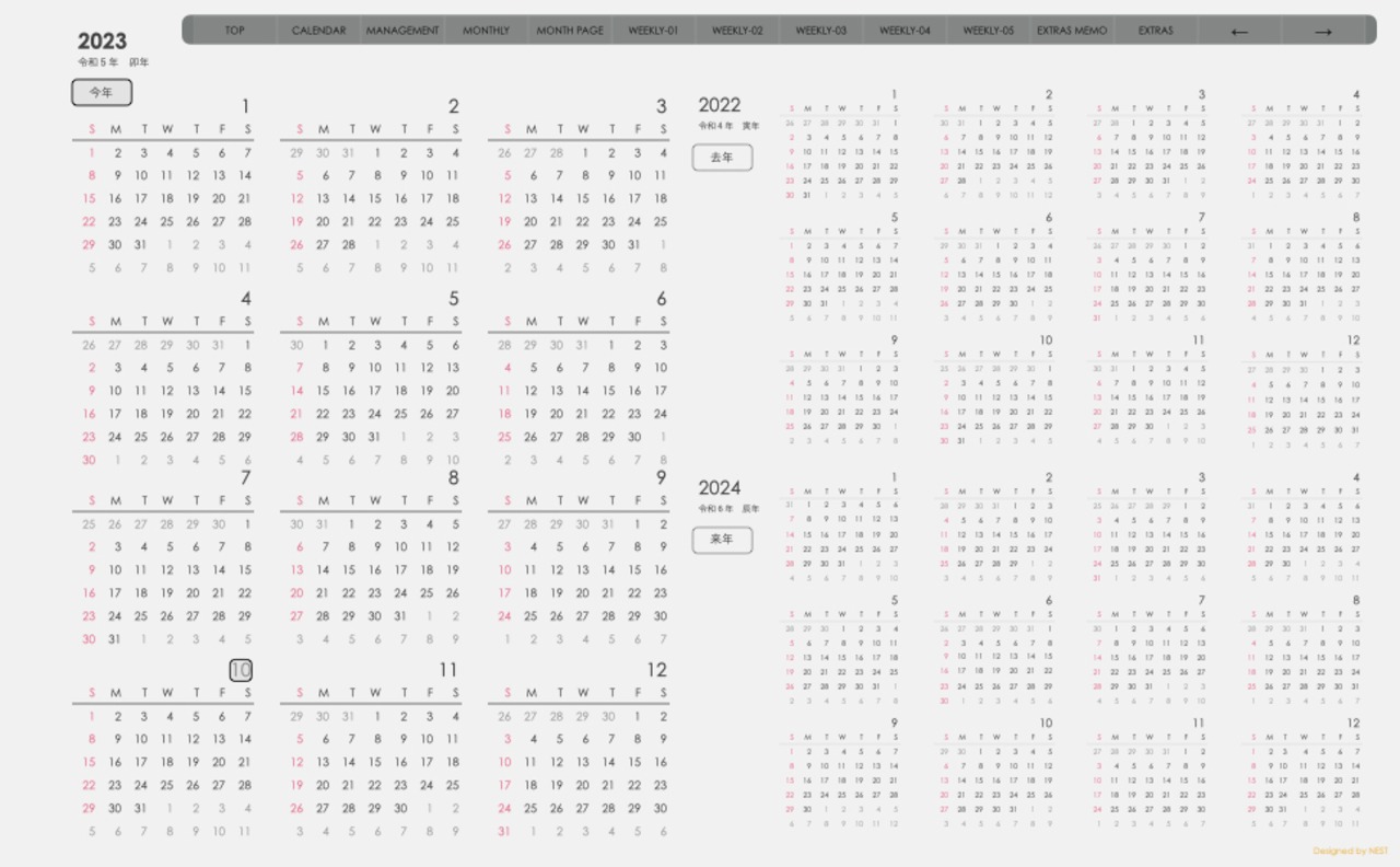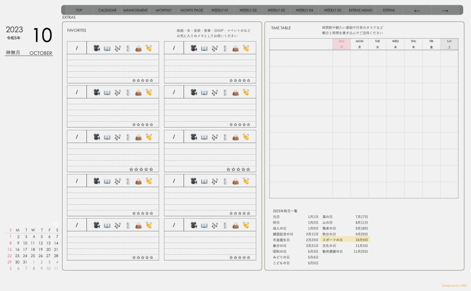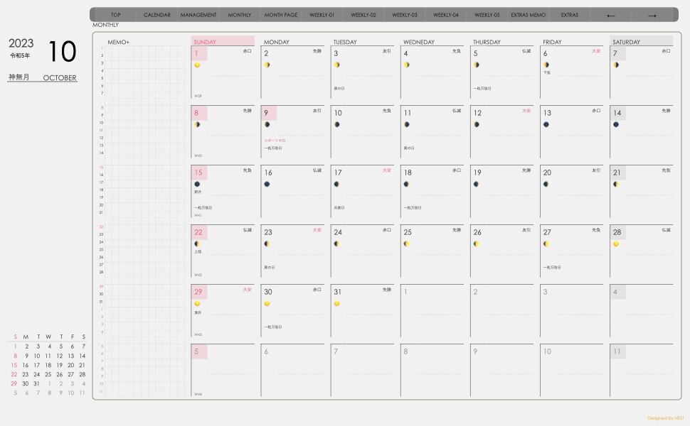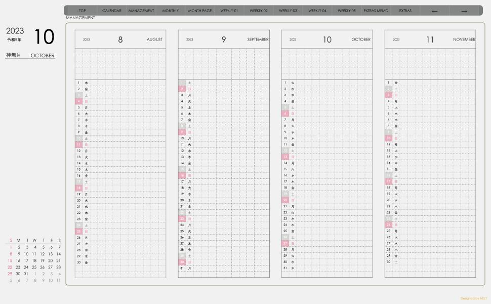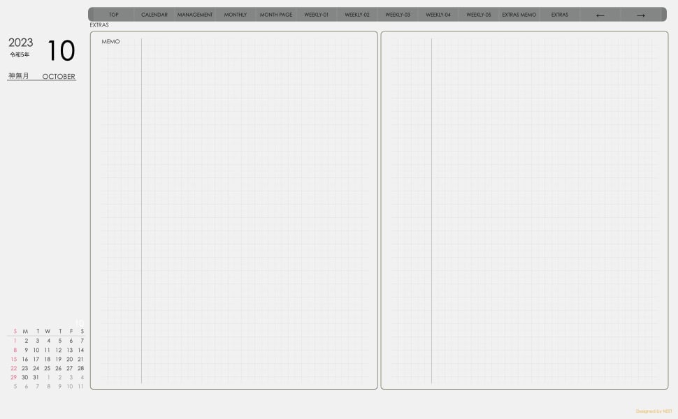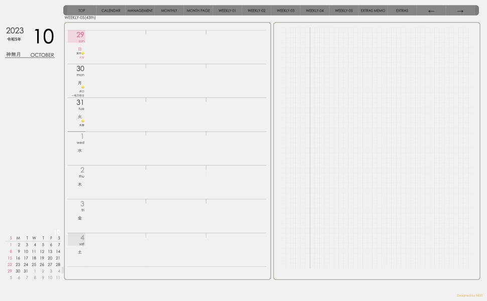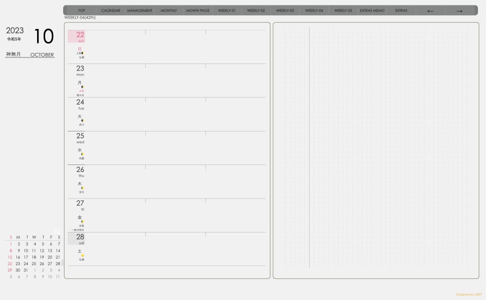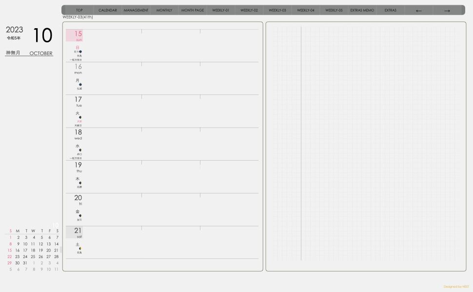 **デジタル手帖(week-leftシリーズ)日曜日始まり2023.10月版**が登場!