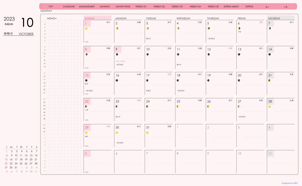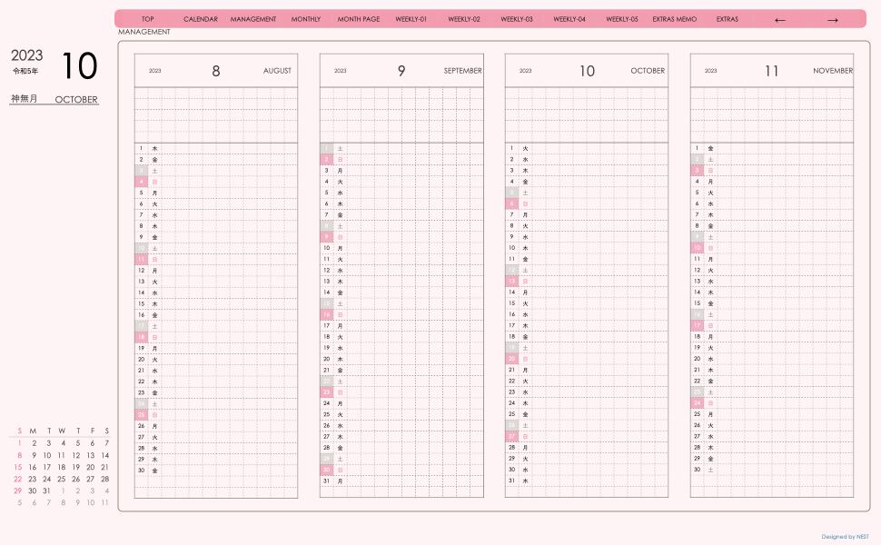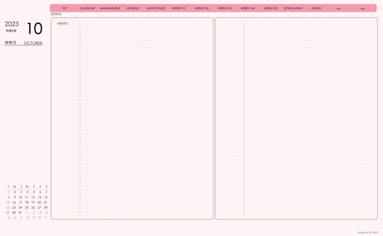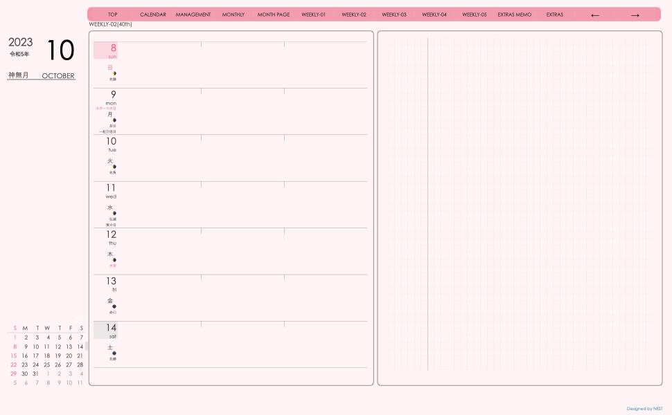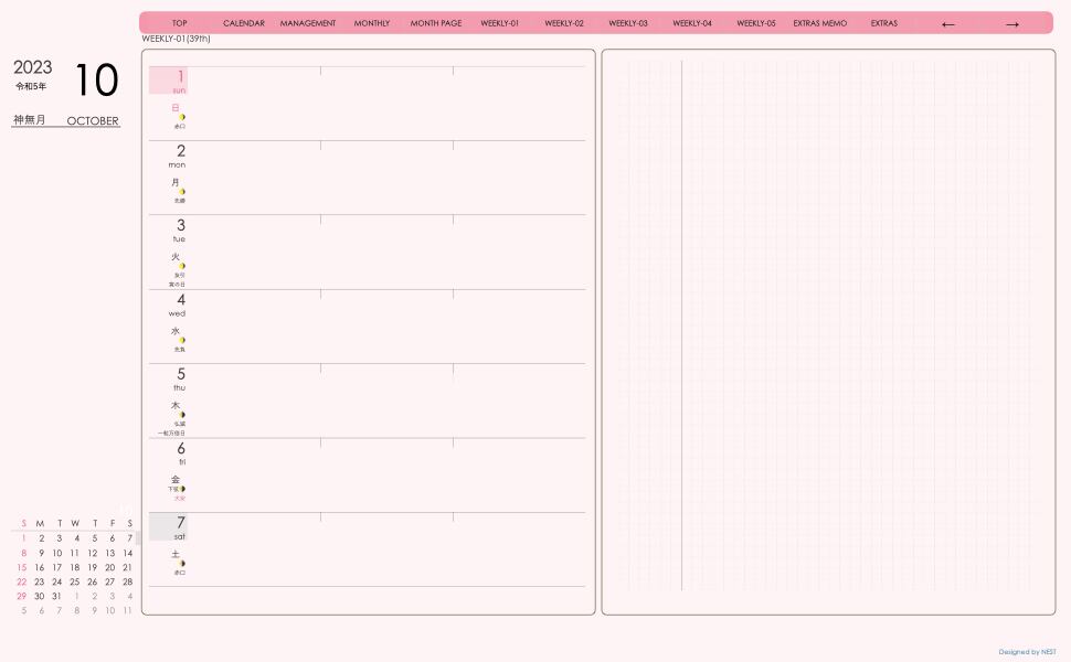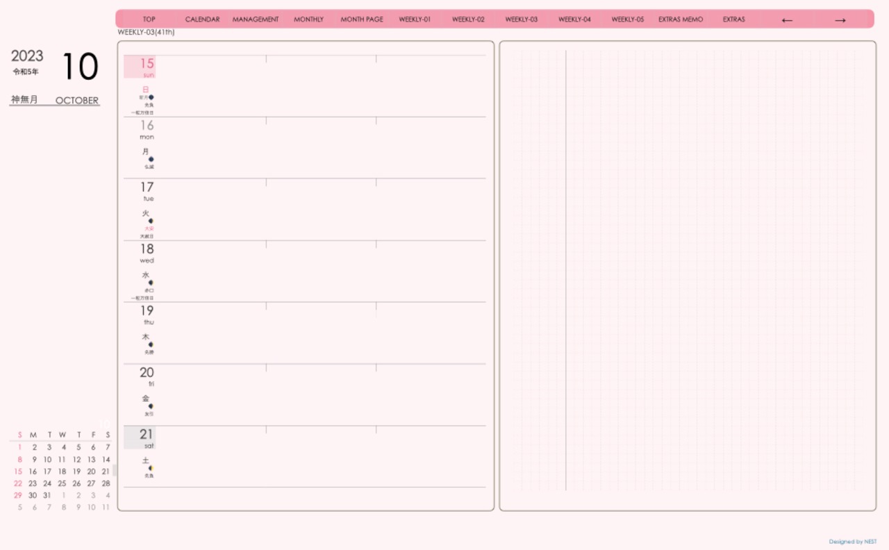 **デジタル手帖(week-leftシリーズ)日曜日始まり2023.10月版**が登場!