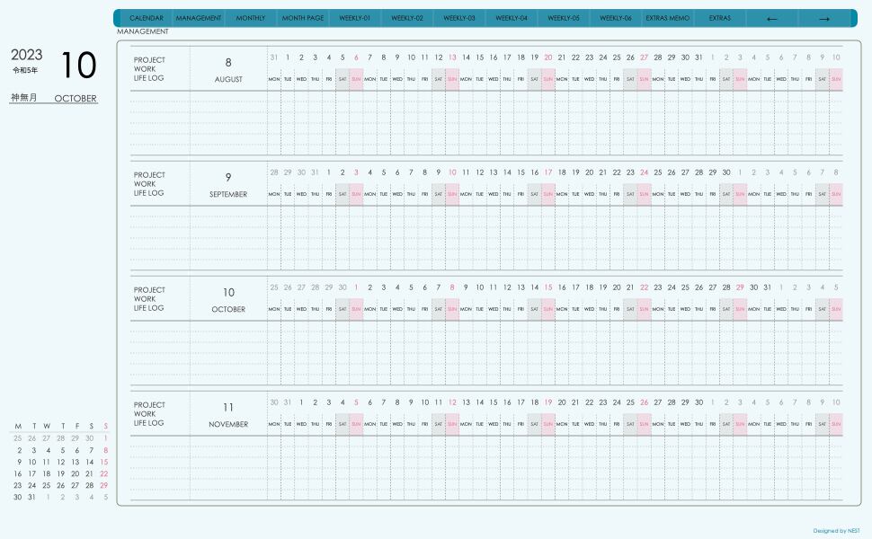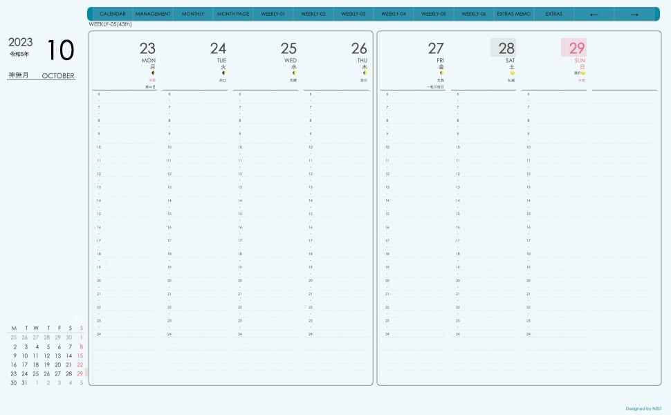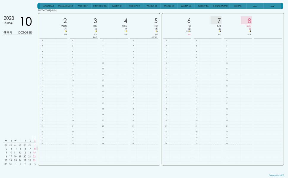 **デジタル手帖(week-verticalシリーズ)月曜日始まり2023.10月版**が登場!