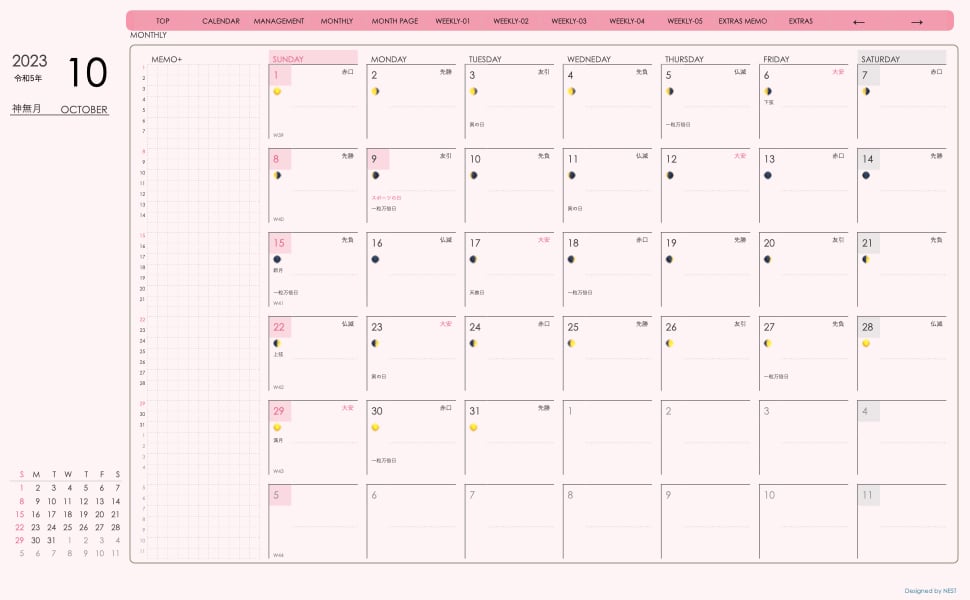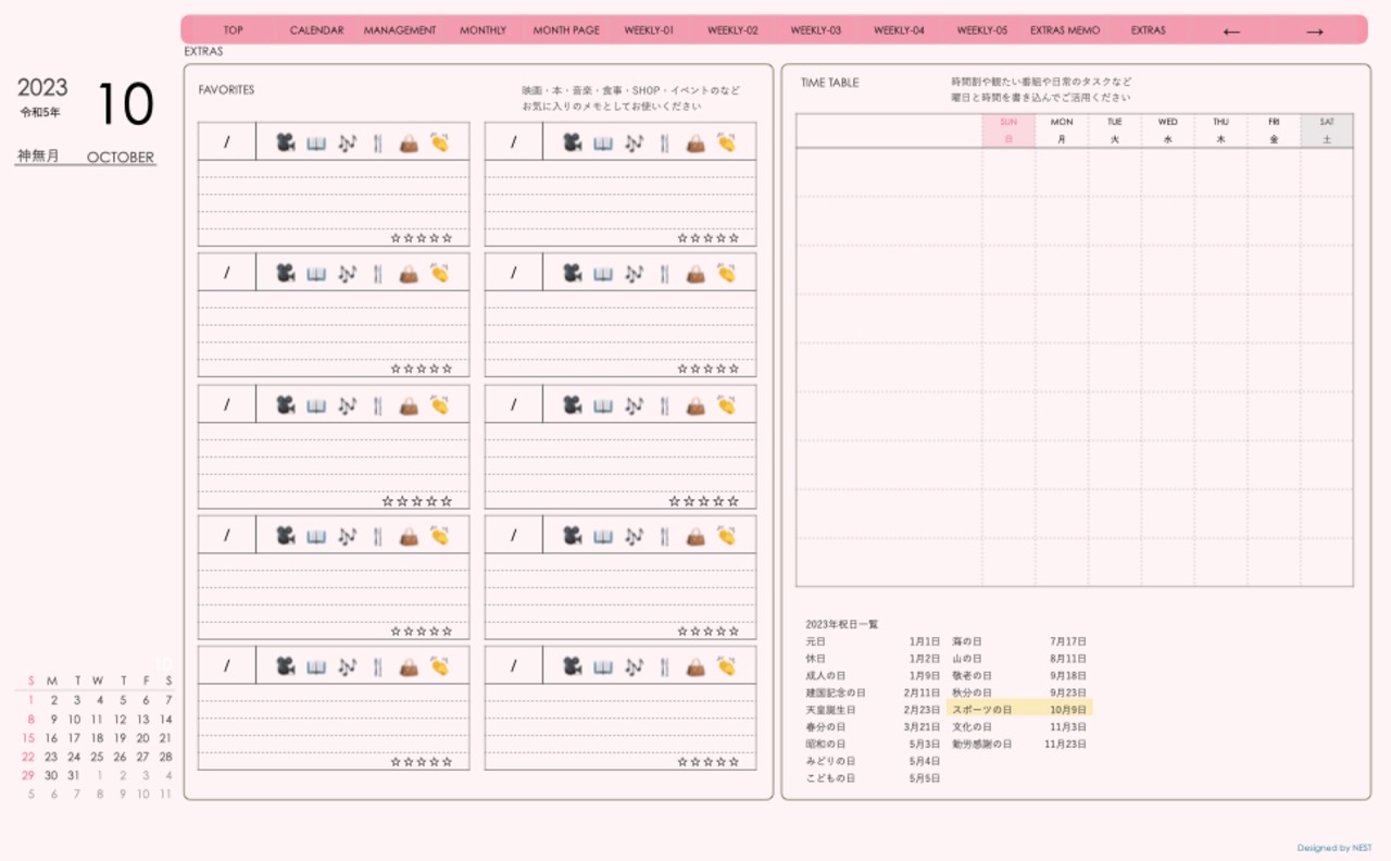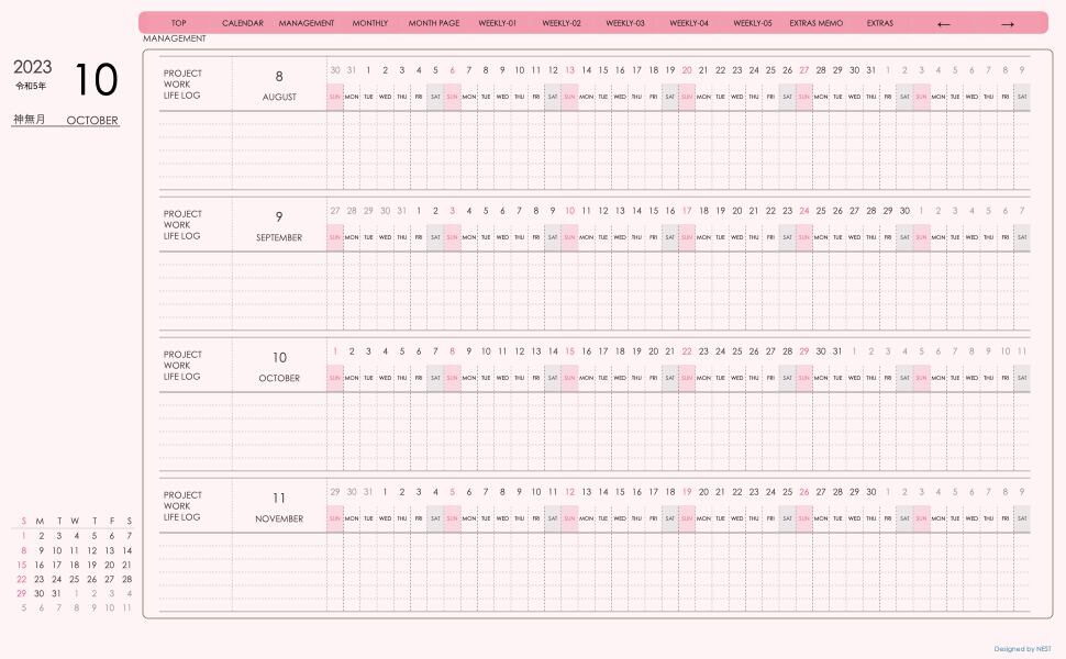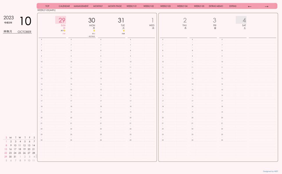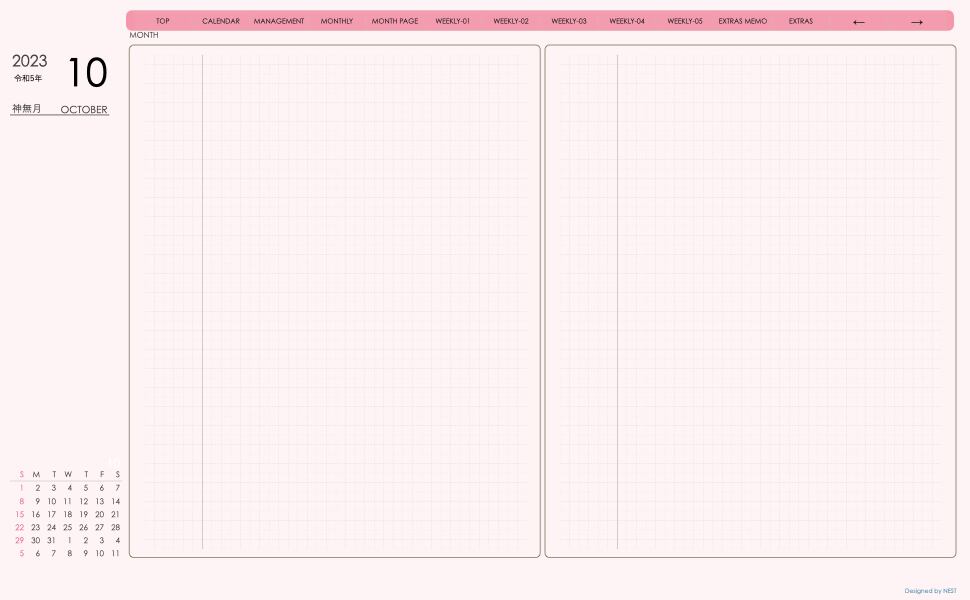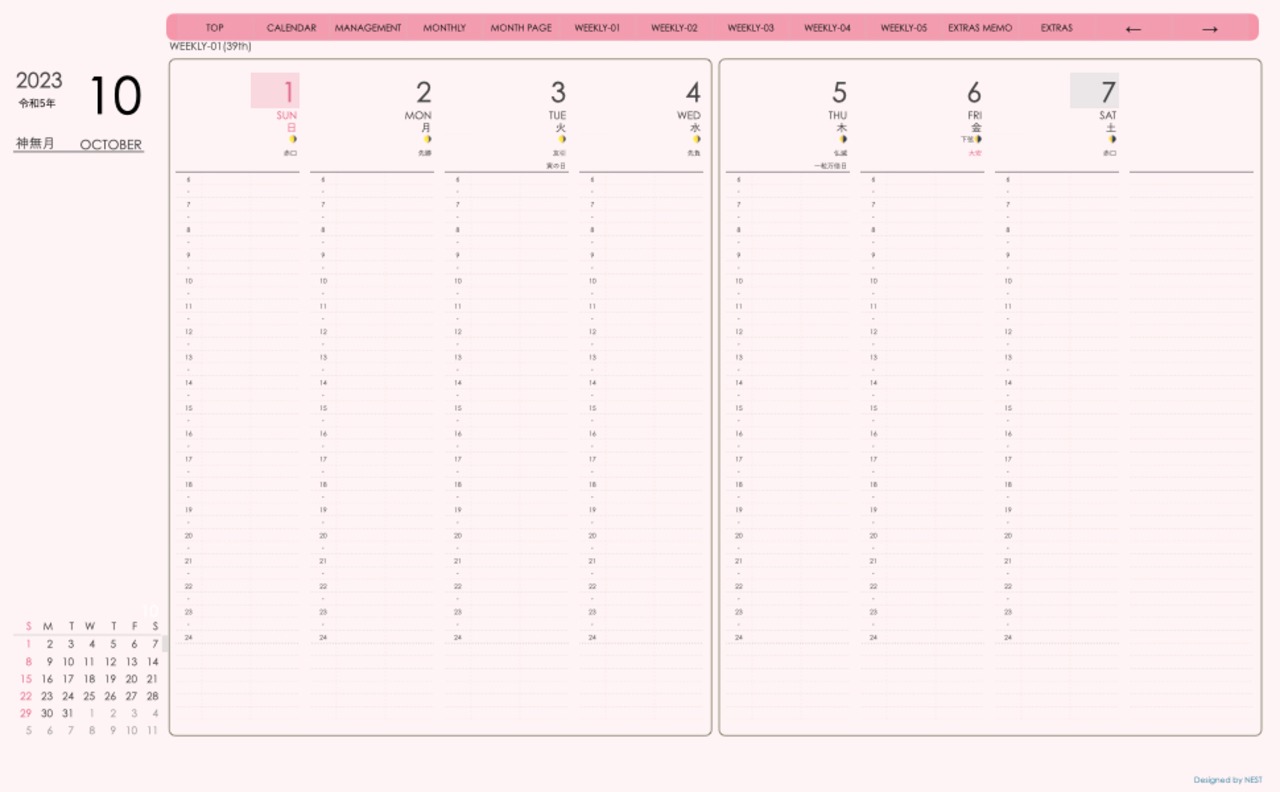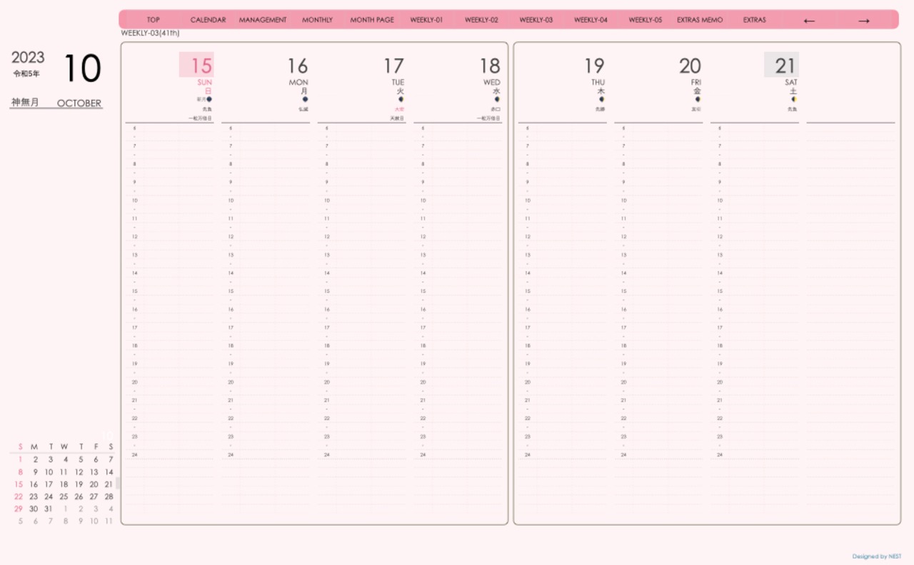 **デジタル手帖(week-verticalシリーズ)日曜日始まり2023.10月版**が登場!