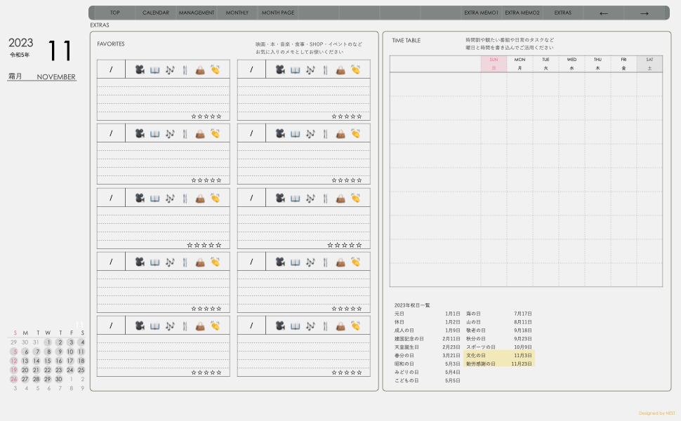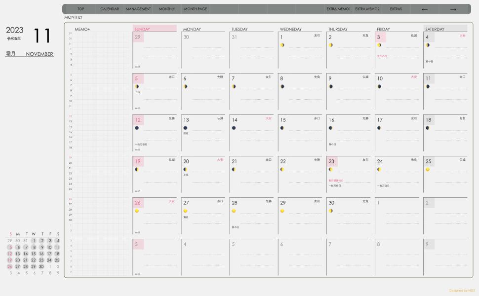 **dayシリーズ日曜日始まり2023年11月版**の登場!