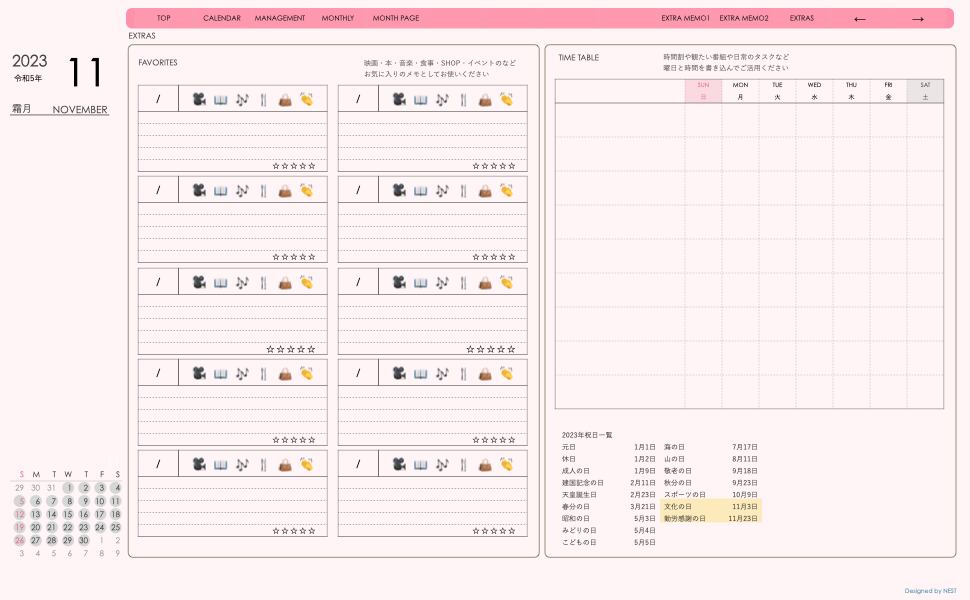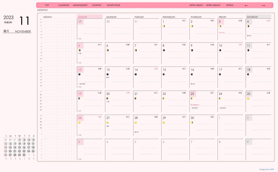 **dayシリーズ日曜日始まり2023年11月版**の登場!