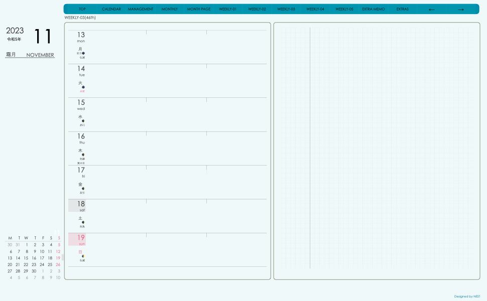 **(week-leftシリーズ)月曜日始まり2023.11月版**の登場!