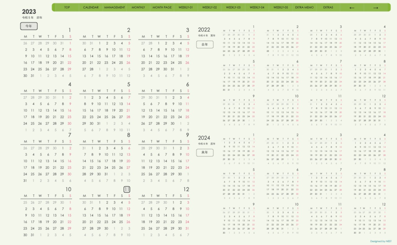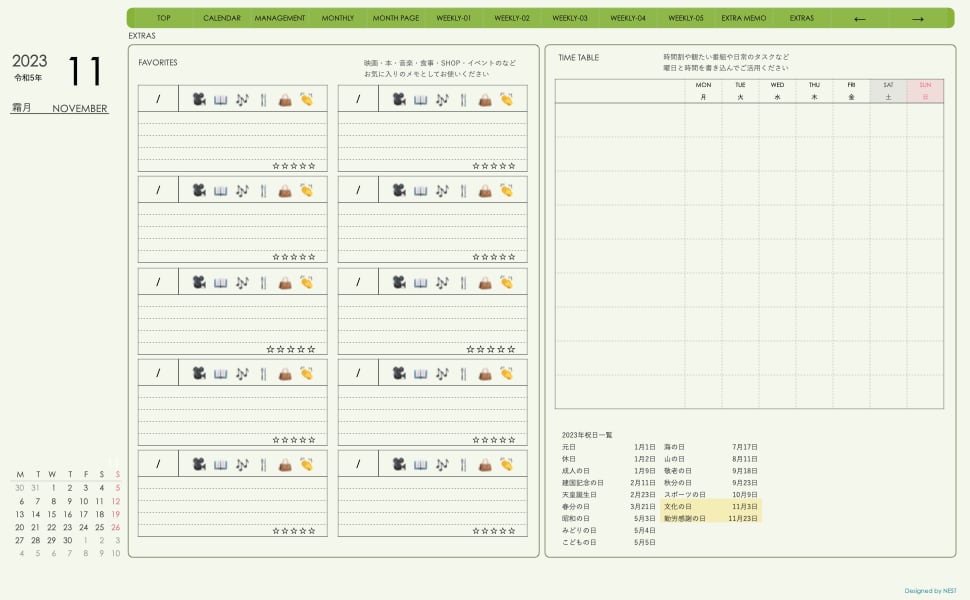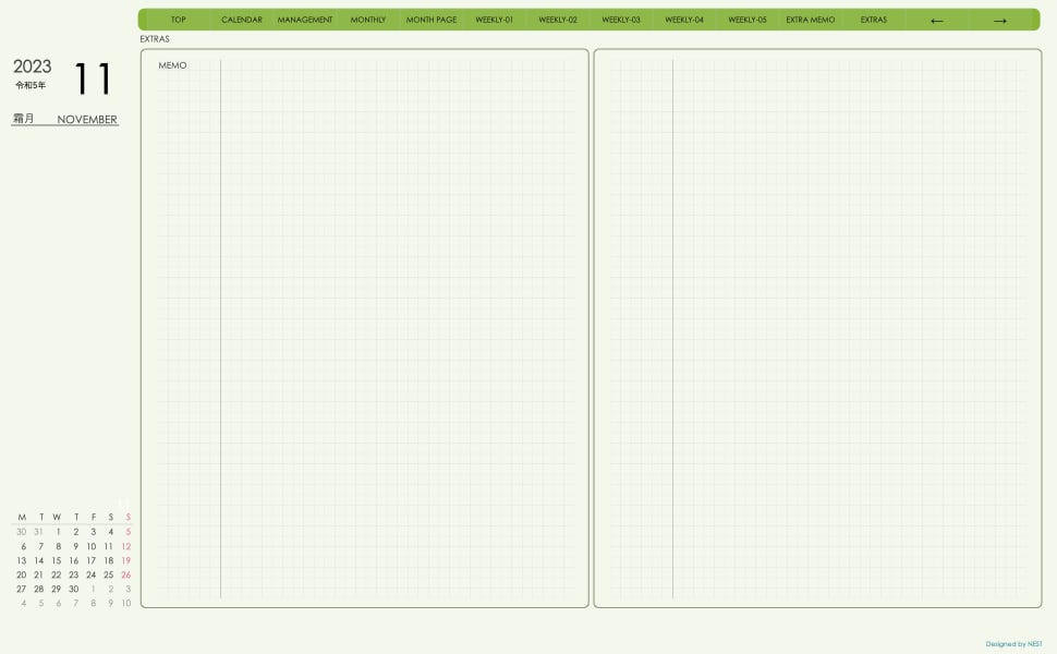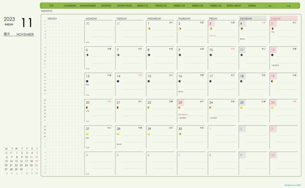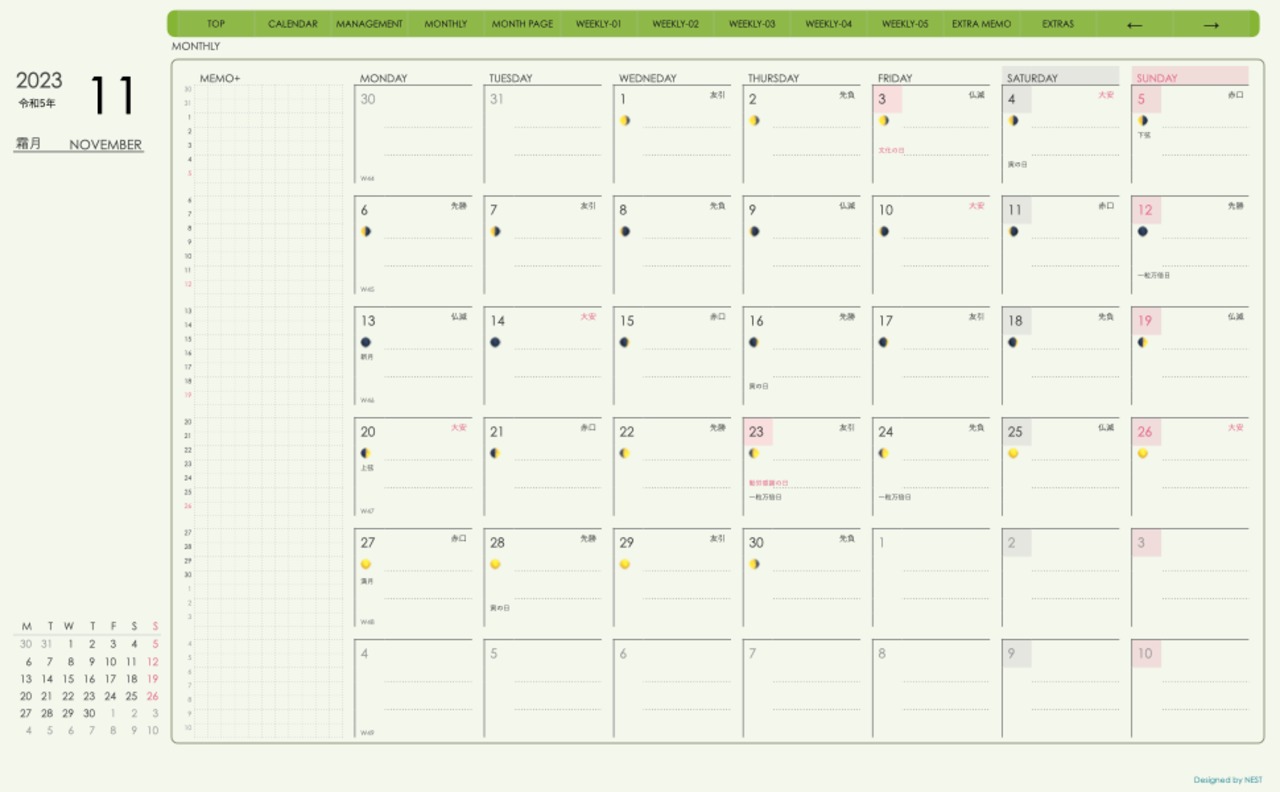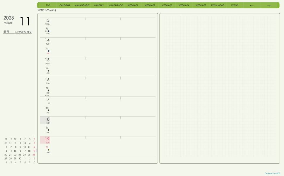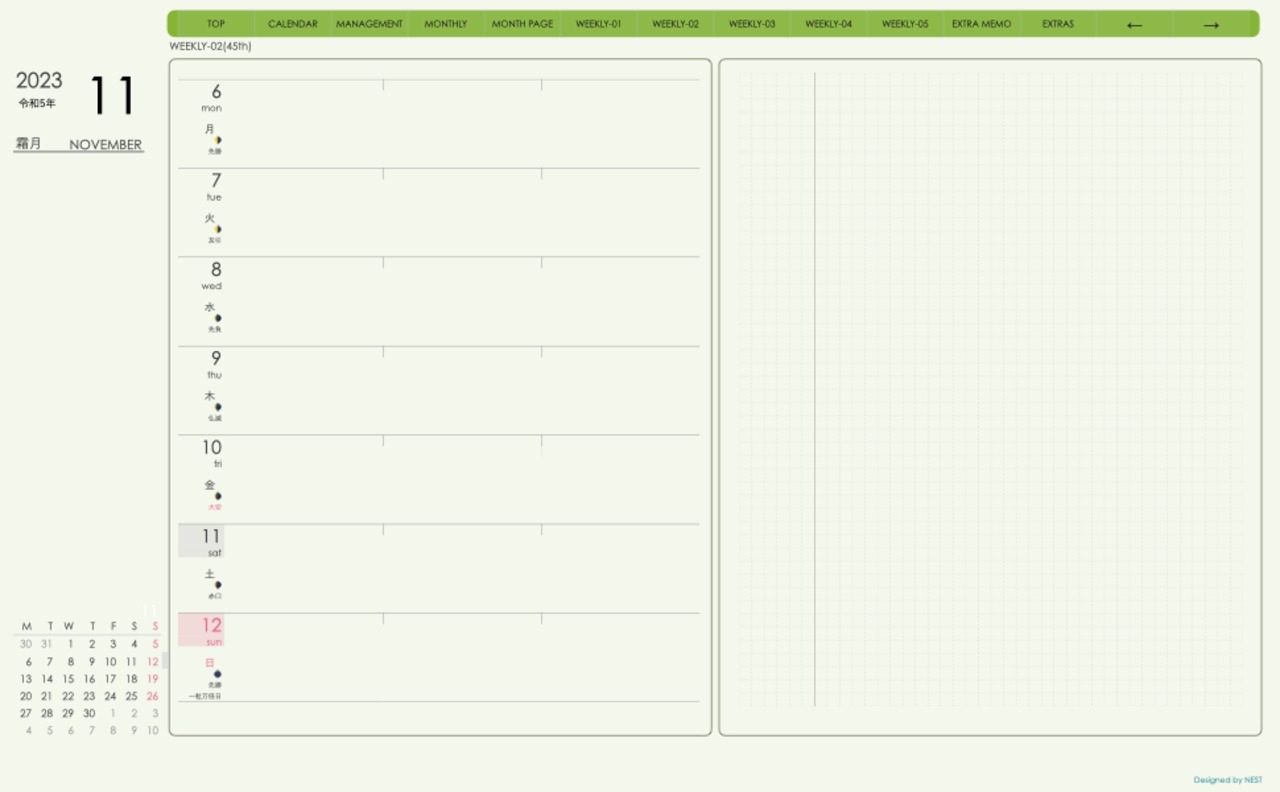 **(week-leftシリーズ)月曜日始まり2023.11月版**の登場!