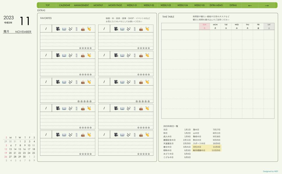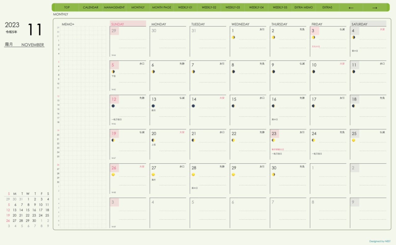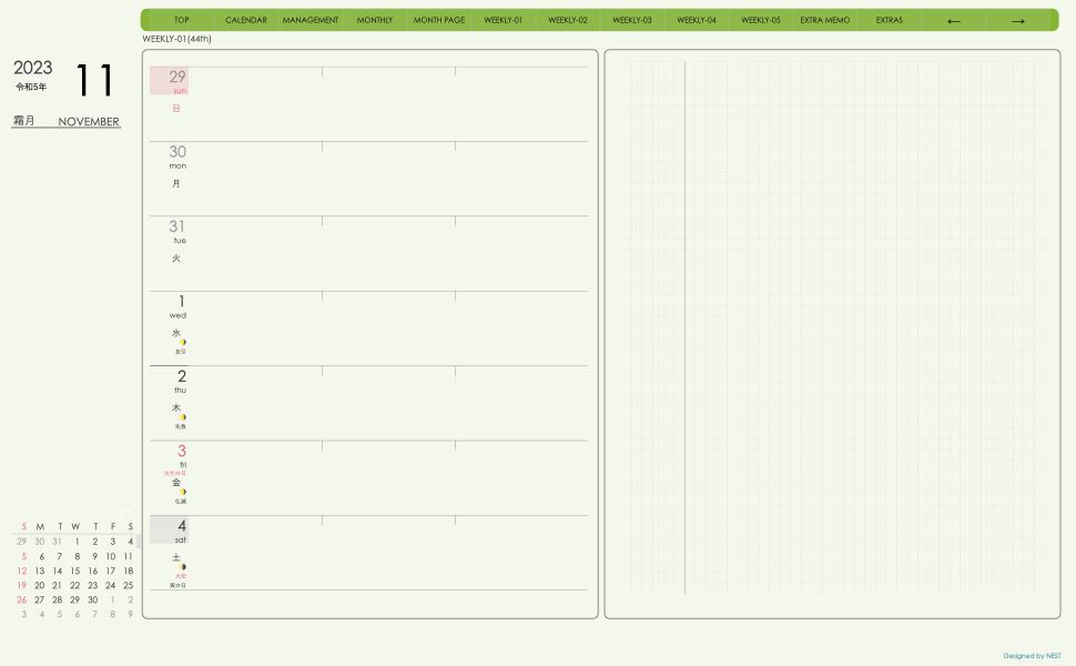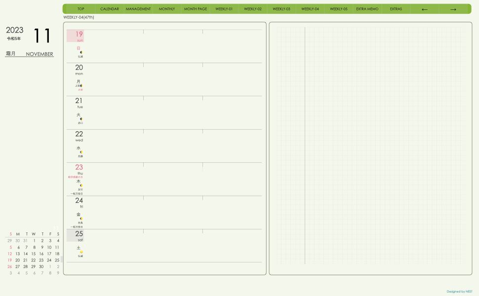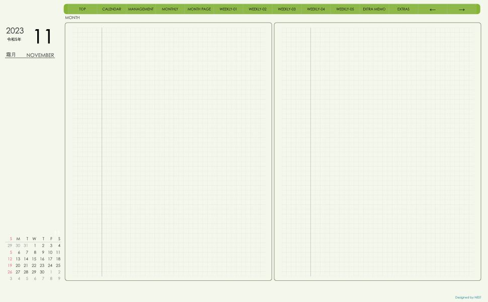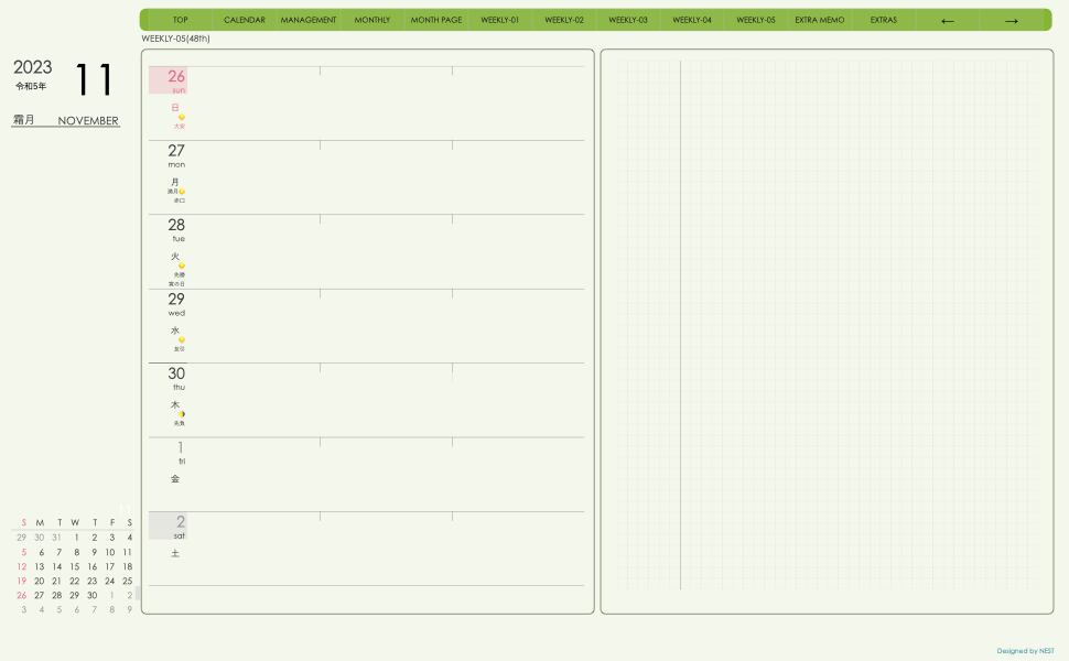 **(week-leftシリーズ)日曜日始まり2023.11月版**の登場!