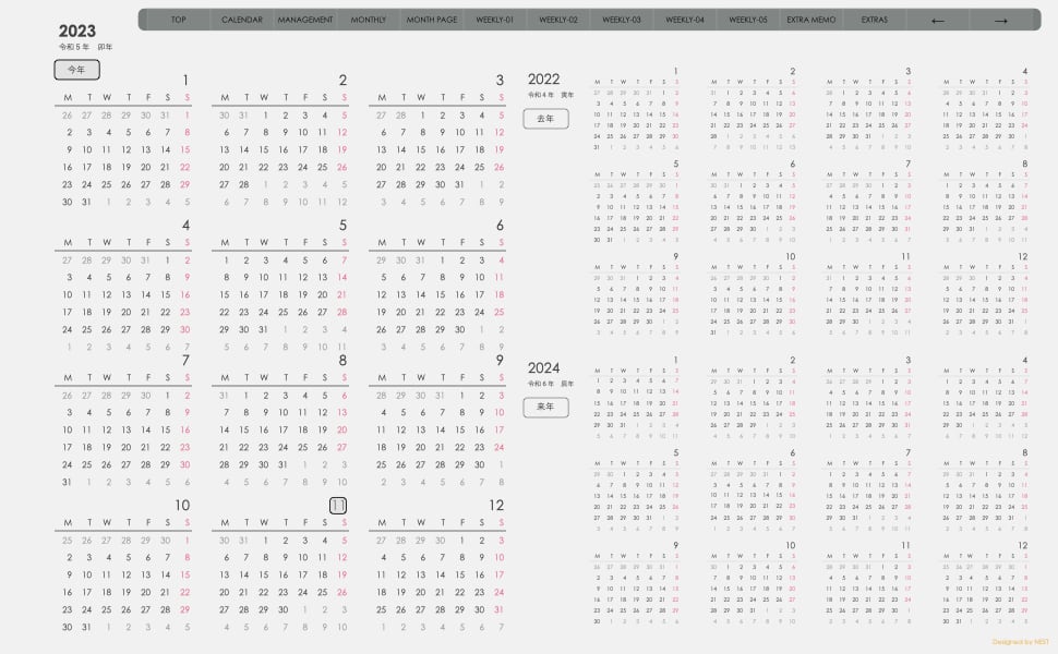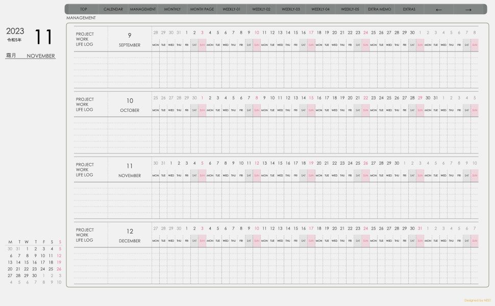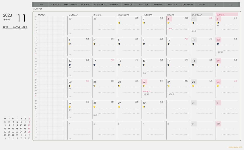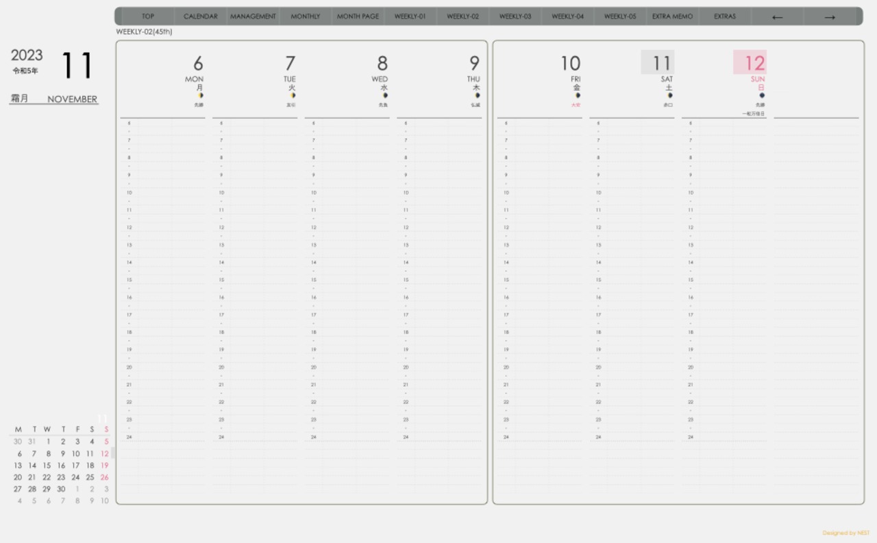 **(week-verticalシリーズ)月曜日始まり2023.11月版**が登場!