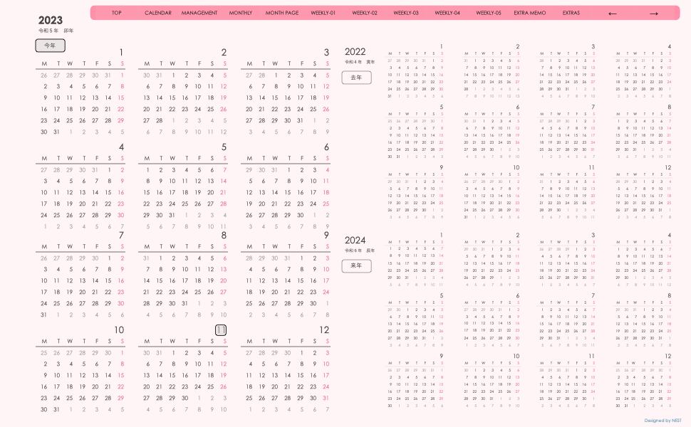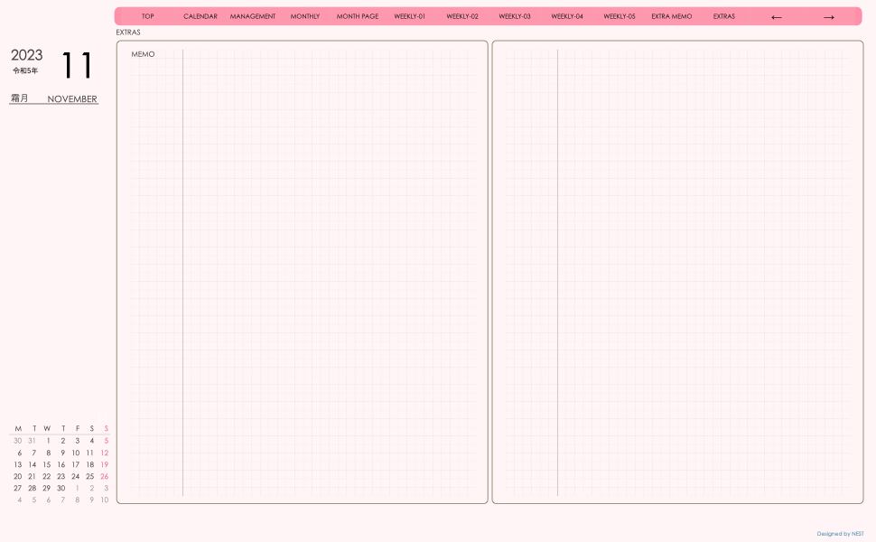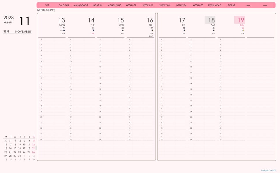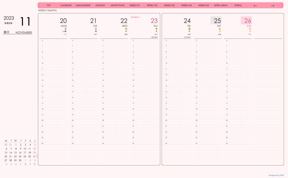 **(week-verticalシリーズ)月曜日始まり2023.11月版**が登場!