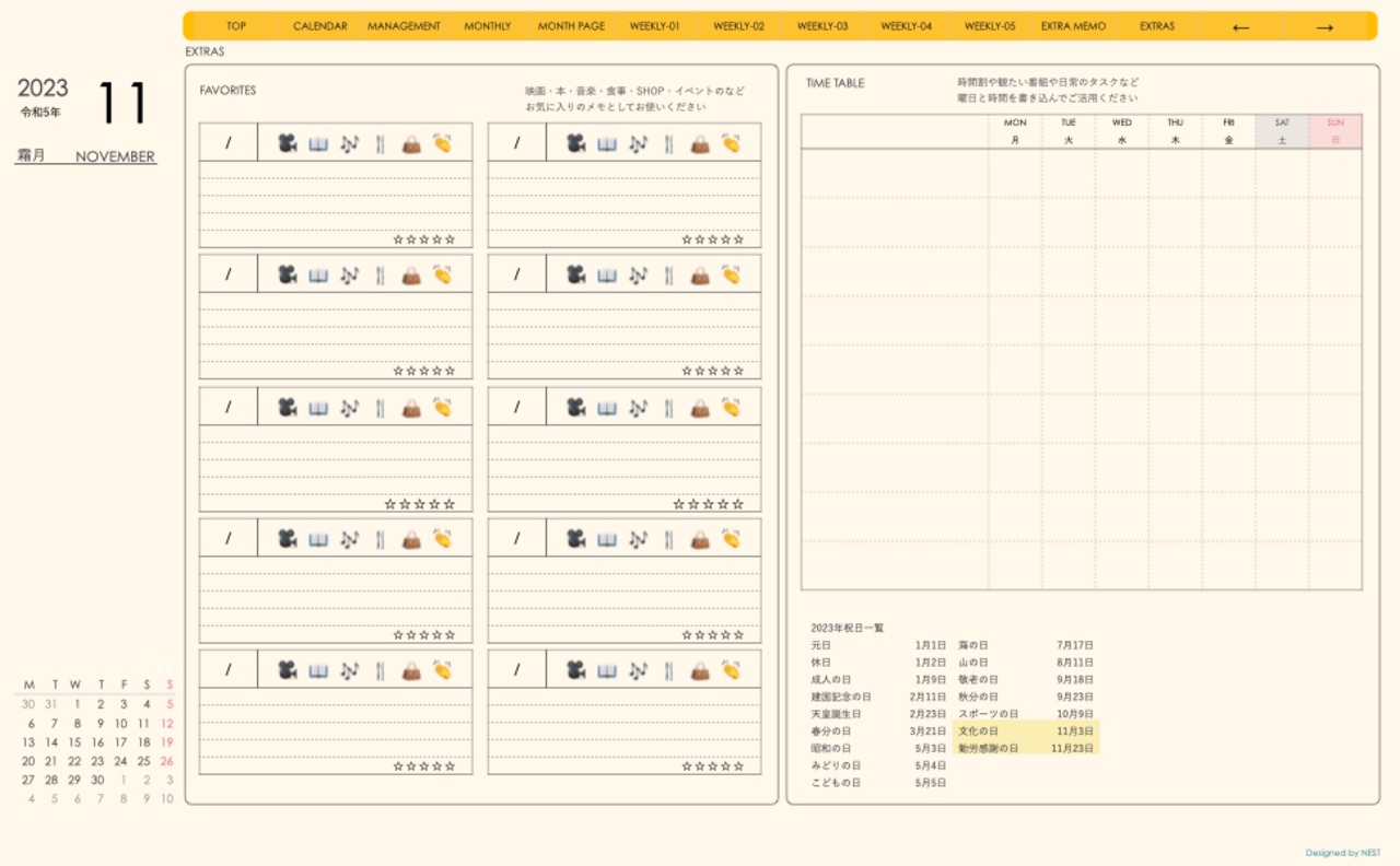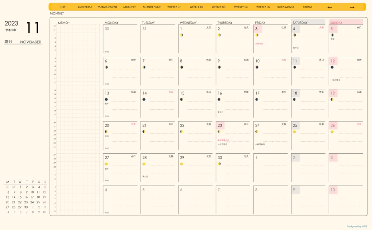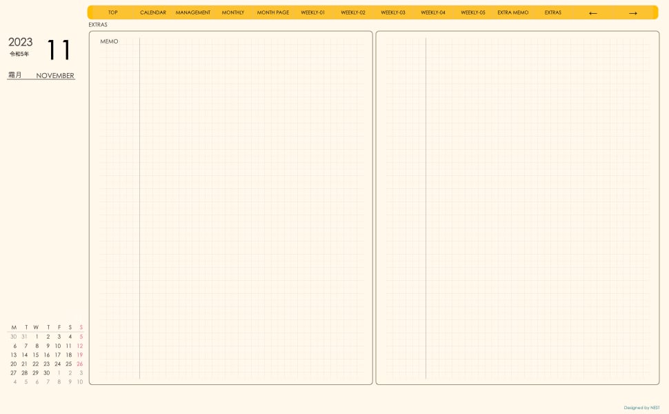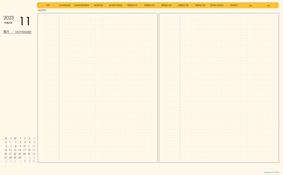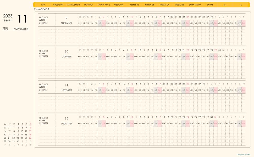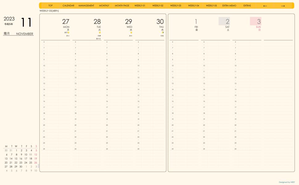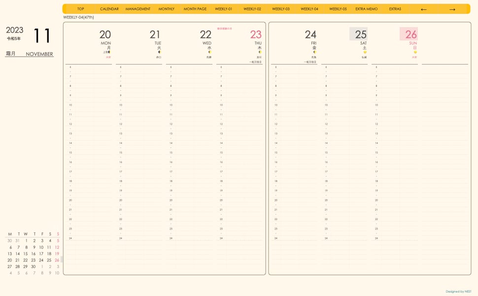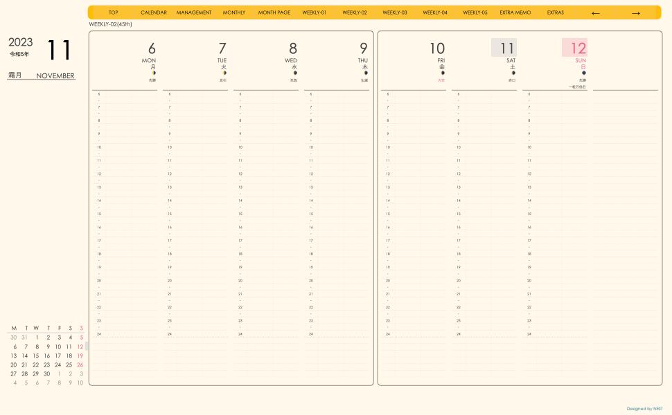 **(week-verticalシリーズ)月曜日始まり2023.11月版**が登場!