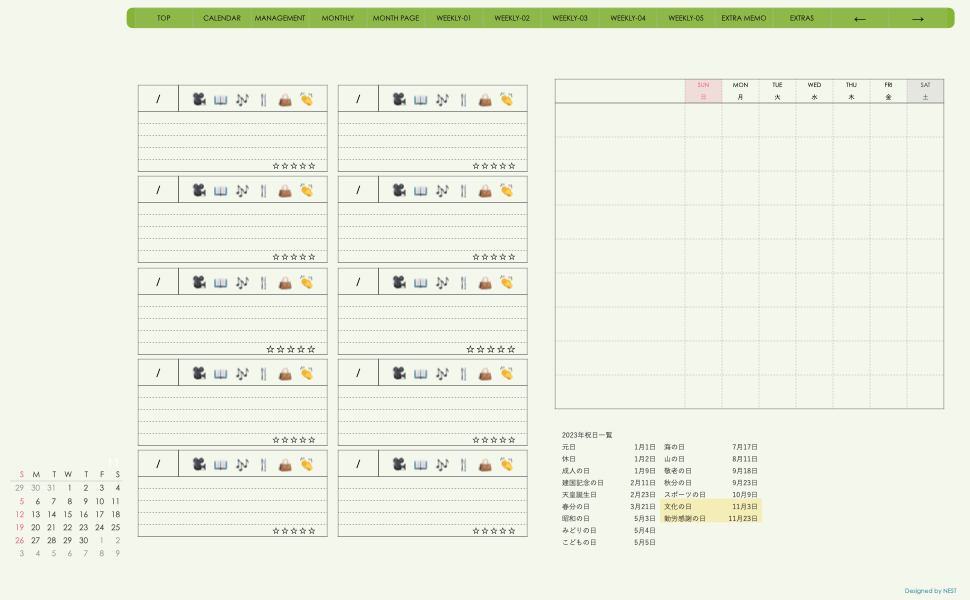 予定の把握と その日のメモの両方が使えるレイアウトとなっています