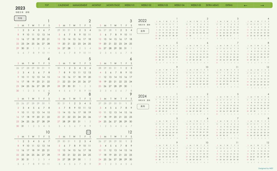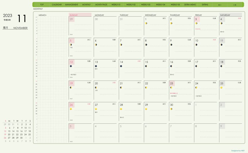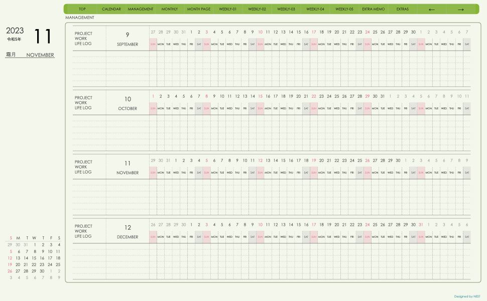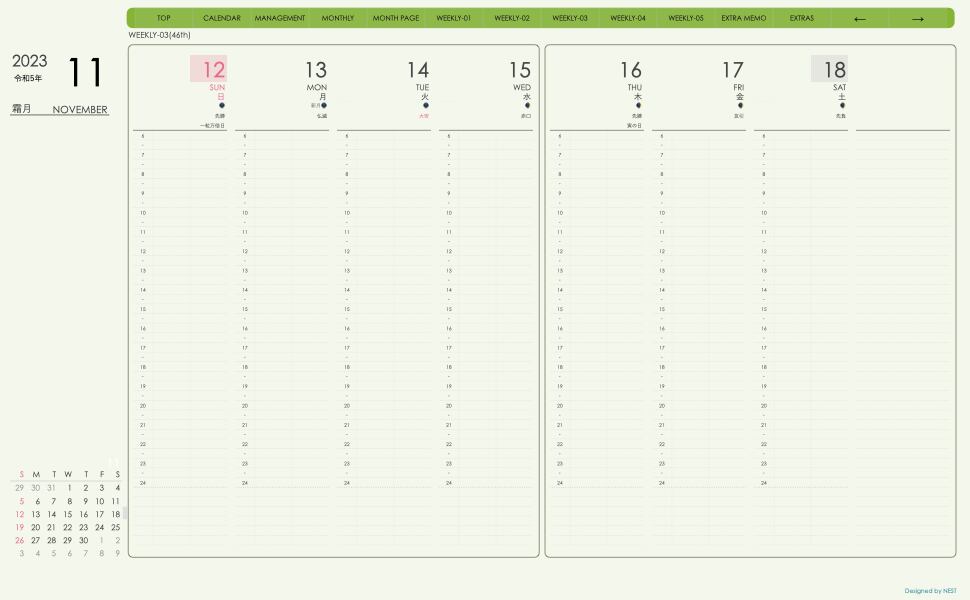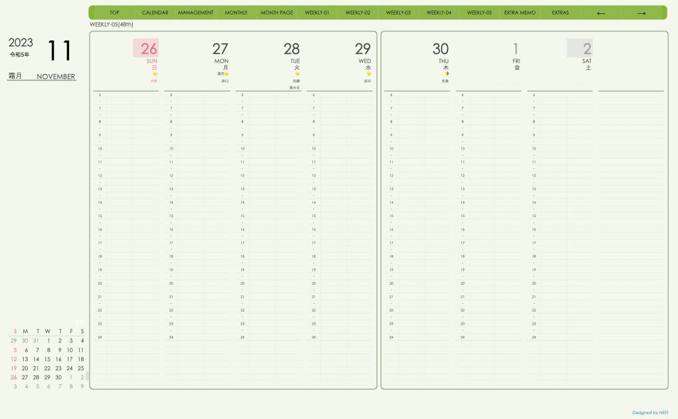 **(week-verticalシリーズ)日曜日始まり2023.11月版**が登場!
