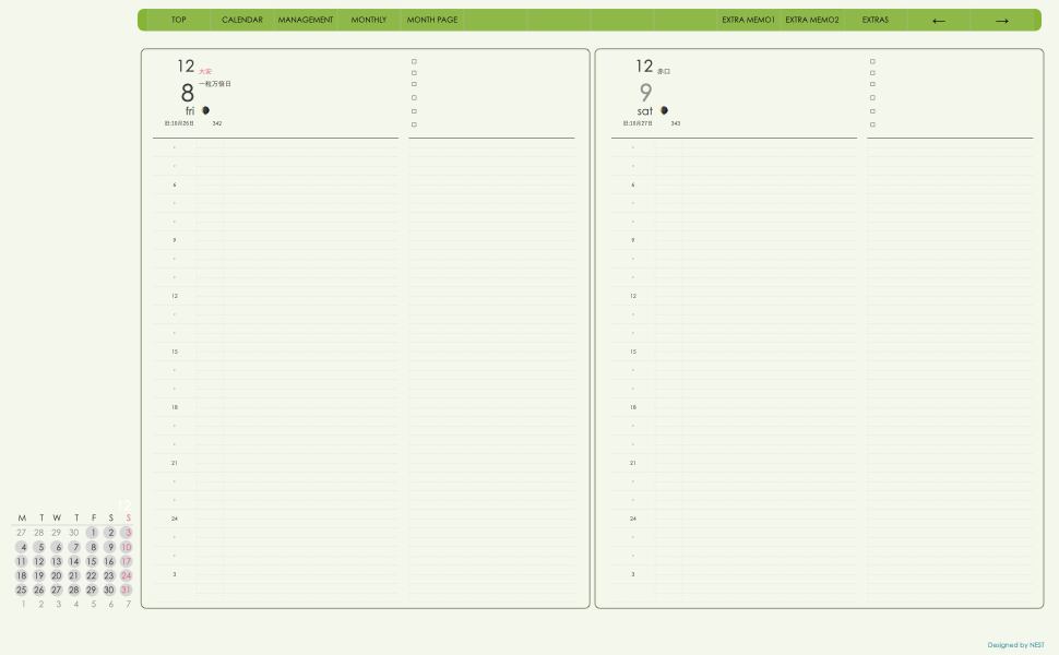 ミニカレンダーの日付の部分を押すとその日付のページへリンクとなり