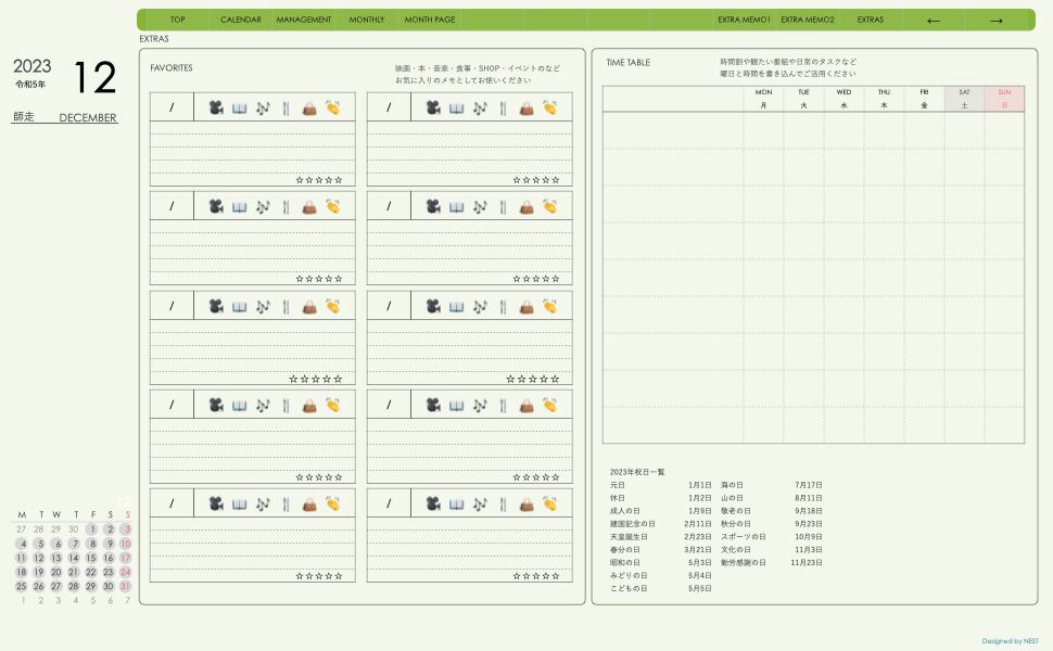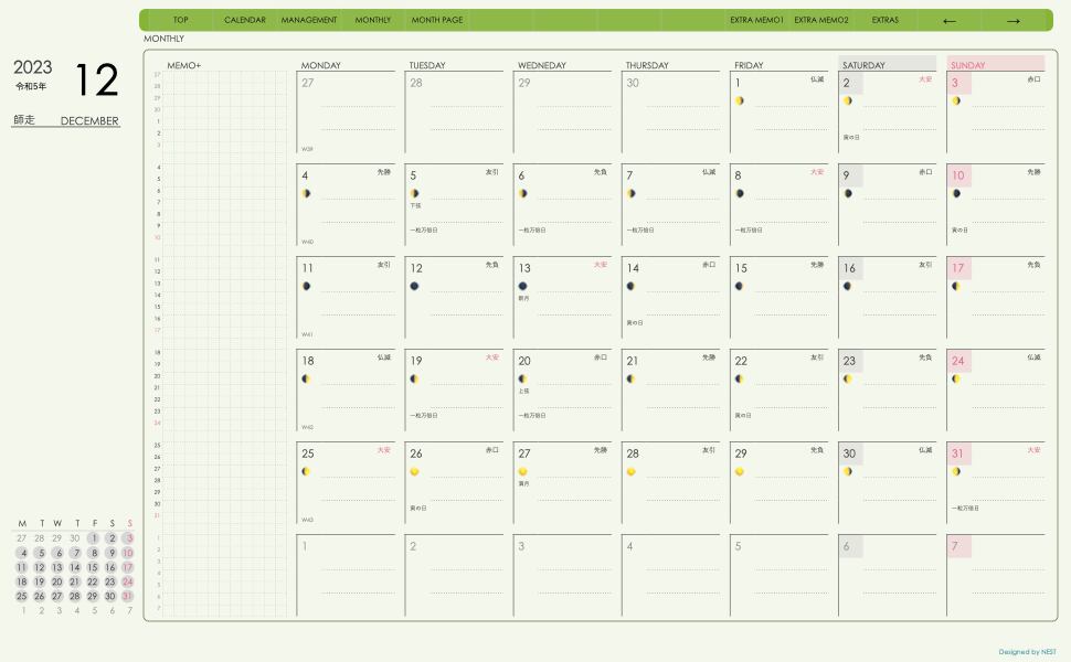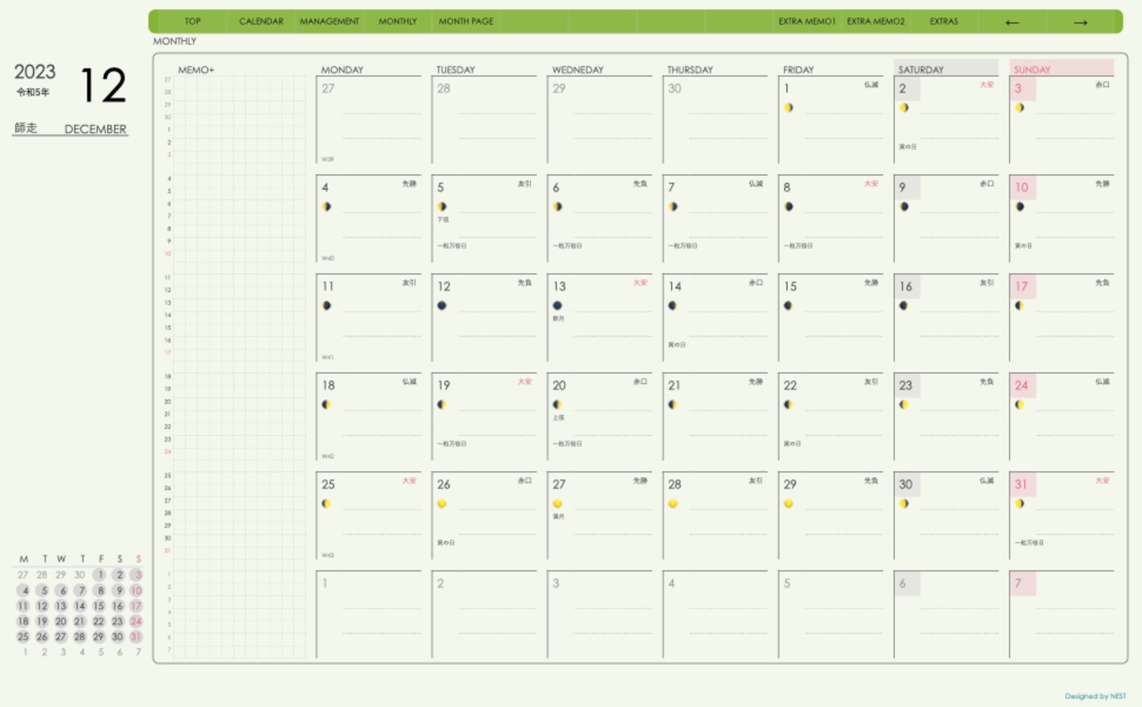 **dayシリーズ月曜日始まり2023年12月版**の登場!