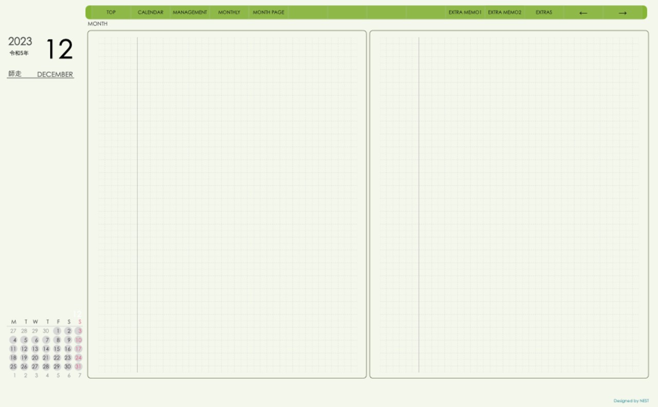 **手帖(dayシリーズ)月曜日始まり2023.12月版**