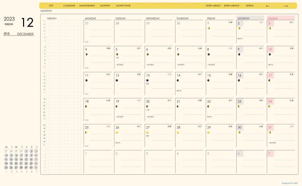 **dayシリーズ月曜日始まり2023年12月版**の登場!