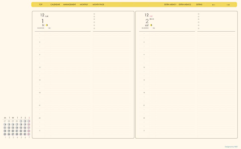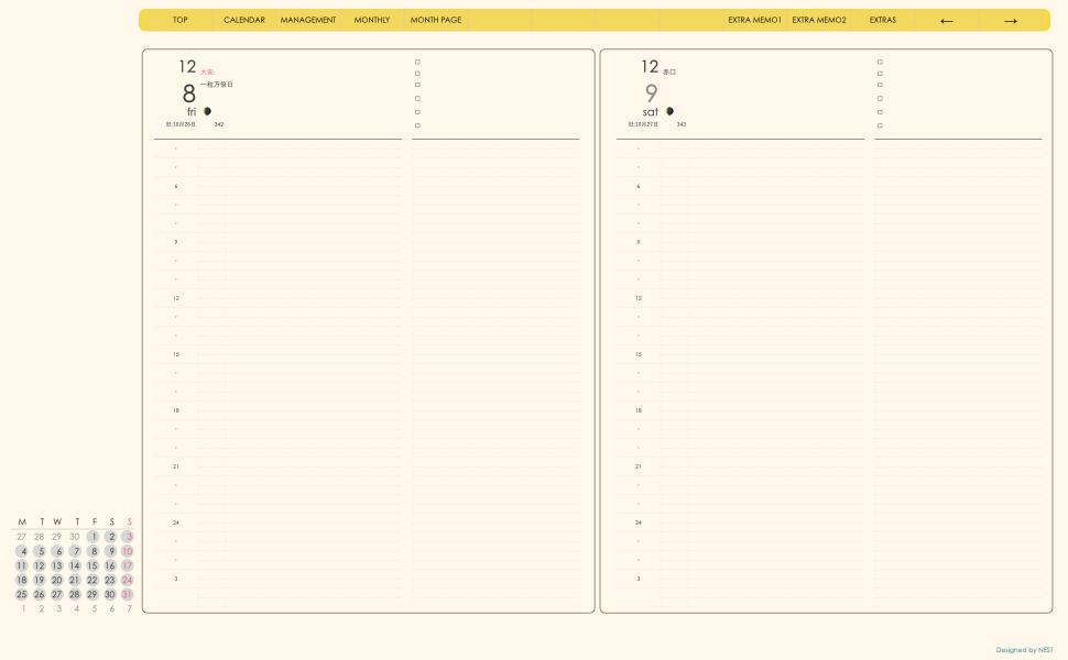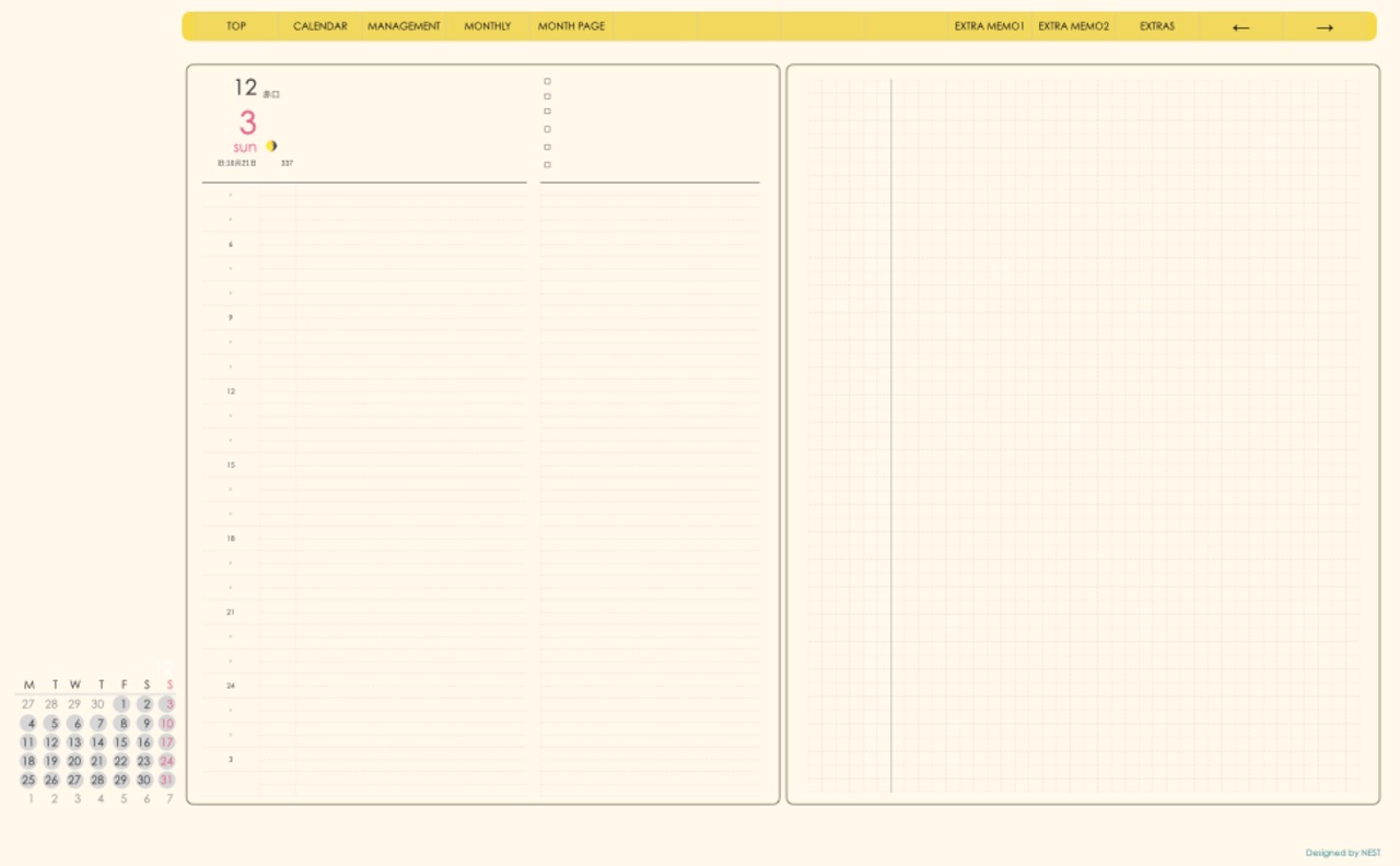 ミニカレンダーの日付の部分を押すとその日付のページへリンクとなり