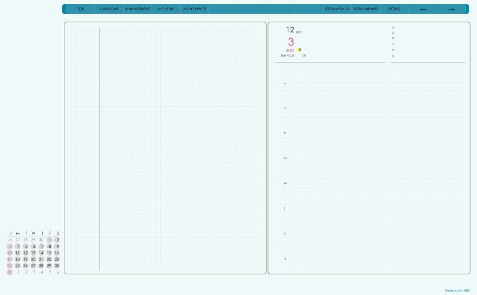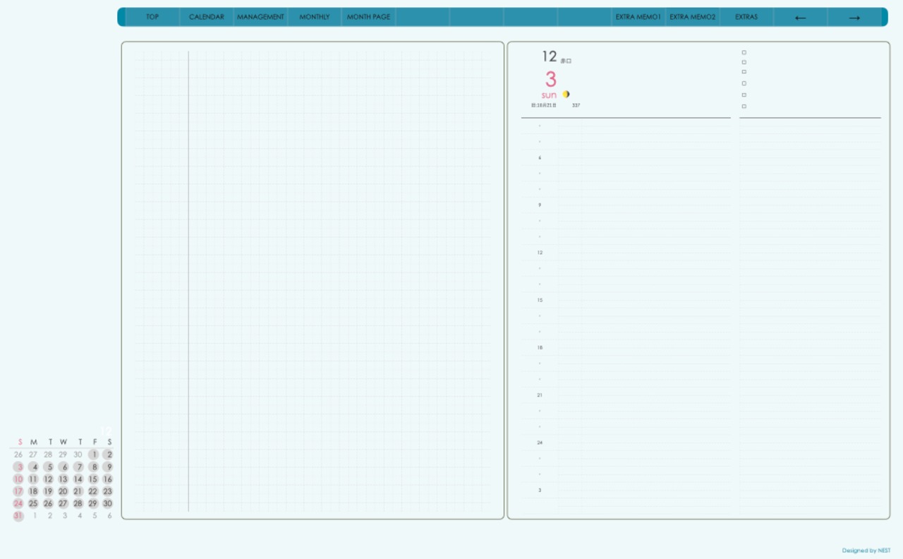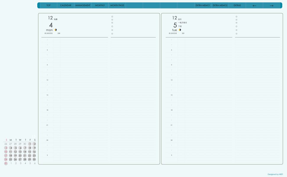 ミニカレンダーの日付の部分を押すとその日付のページへリンクとなり