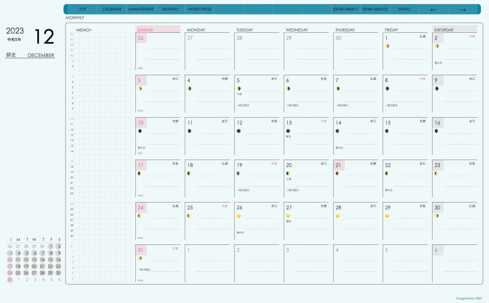 **dayシリーズ日曜日始まり2023年12月版**の登場!