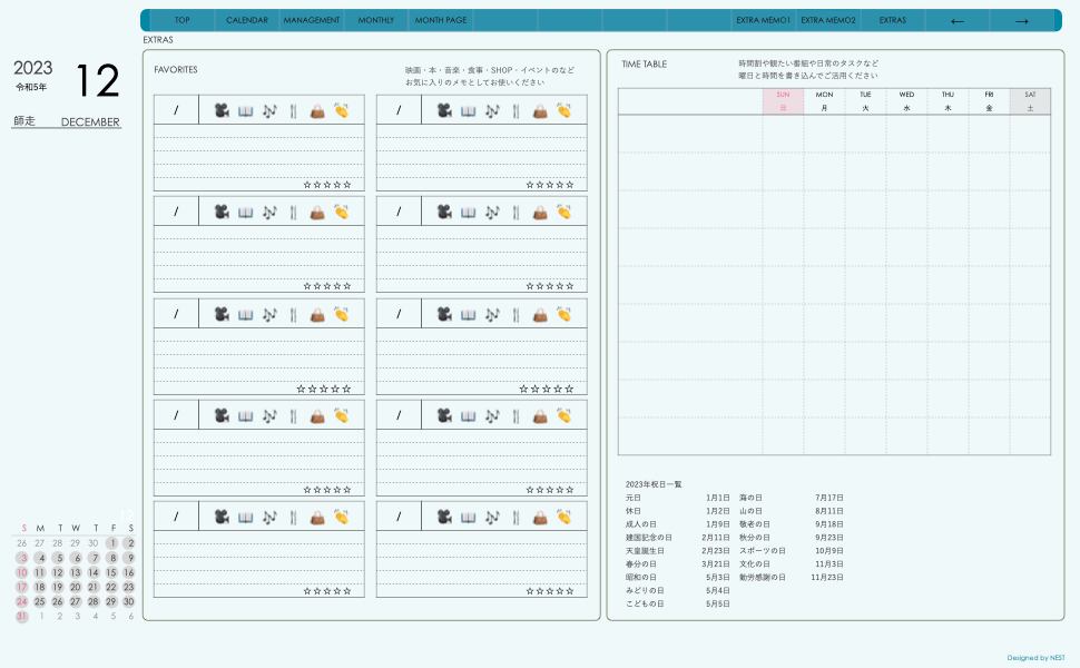 **手帖(dayシリーズ)日曜日始まり2023.12月版**