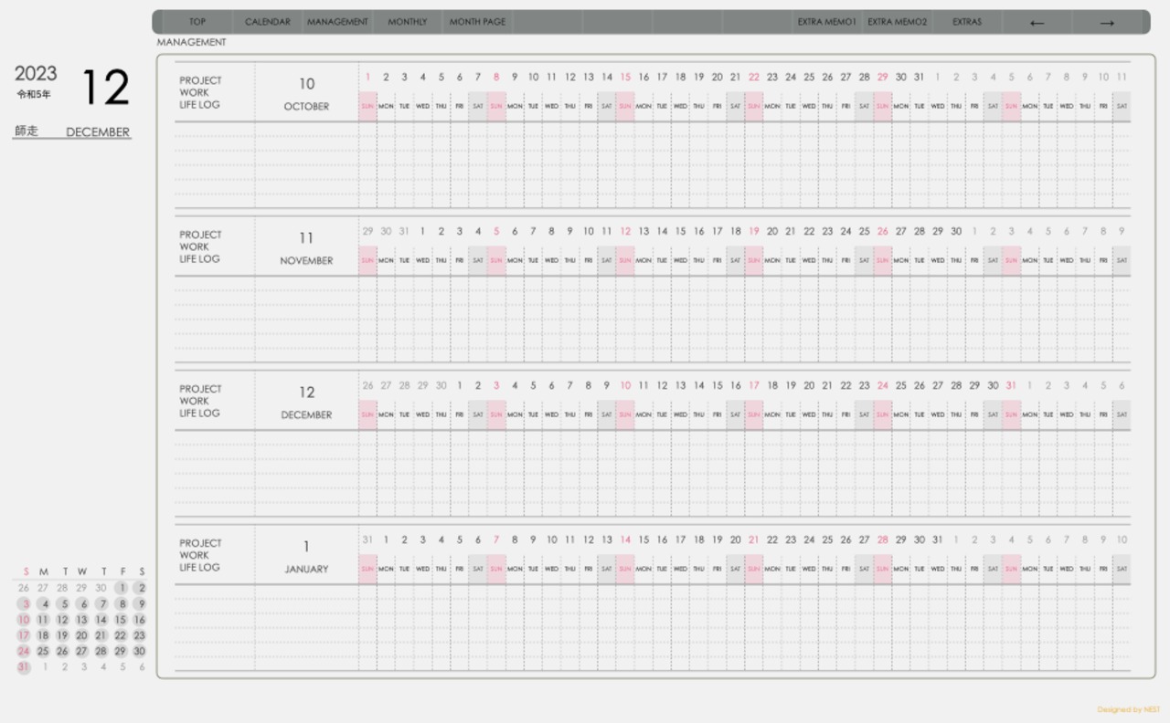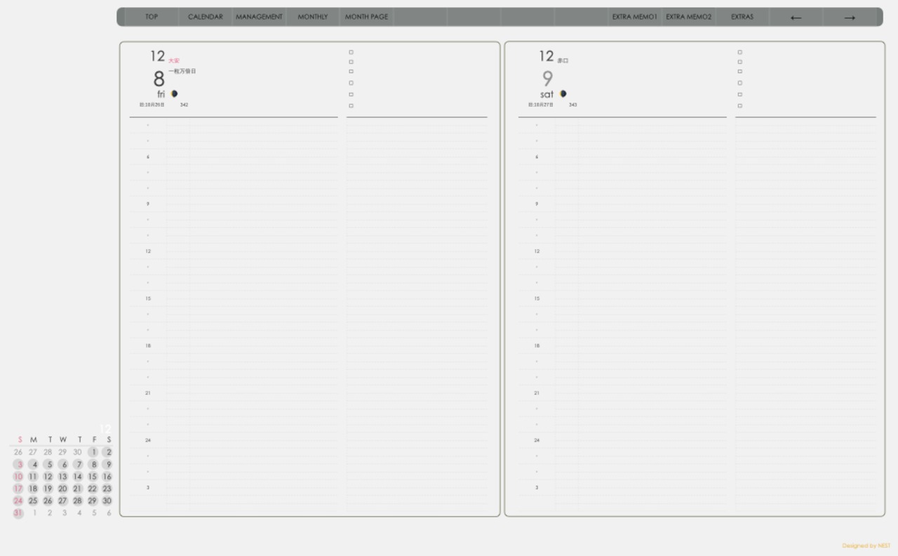 **手帖(dayシリーズ)日曜日始まり2023.12月版**