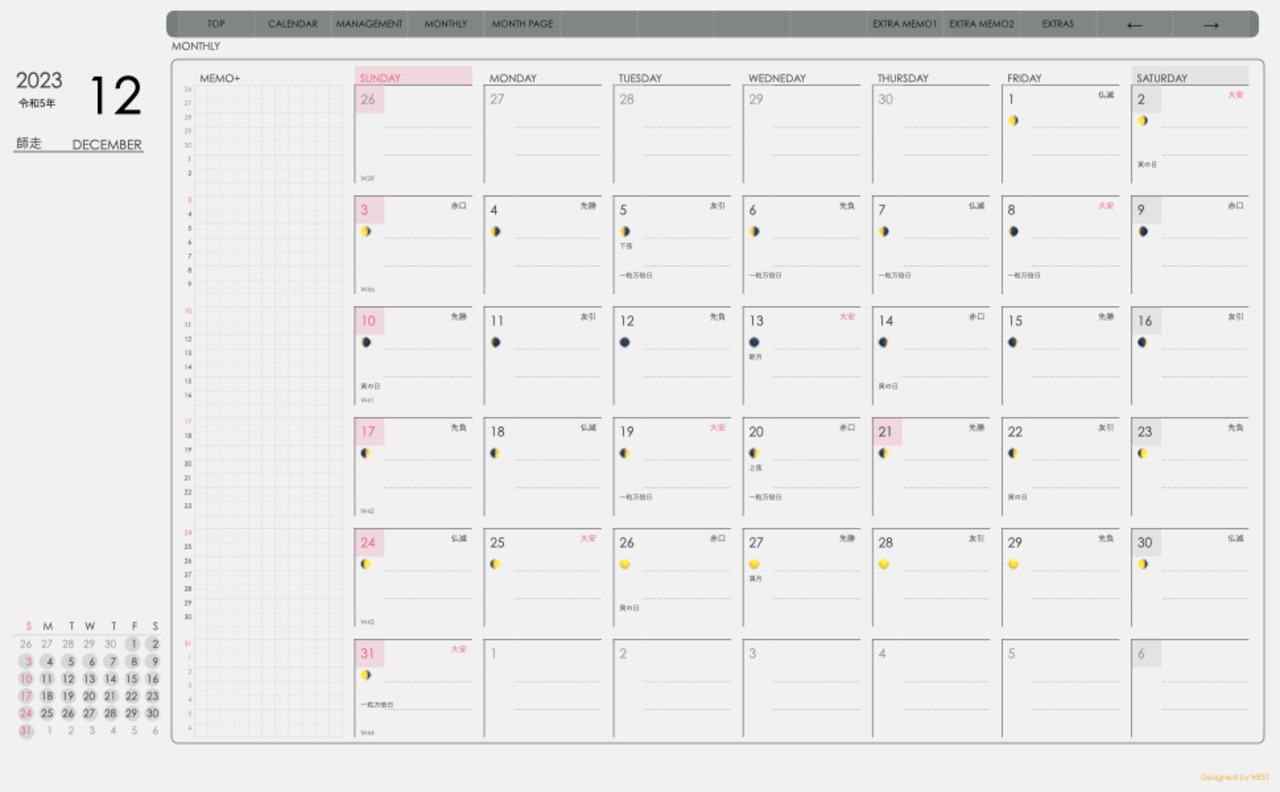 ・ 一粒万倍日などの吉日も表記に加えました。