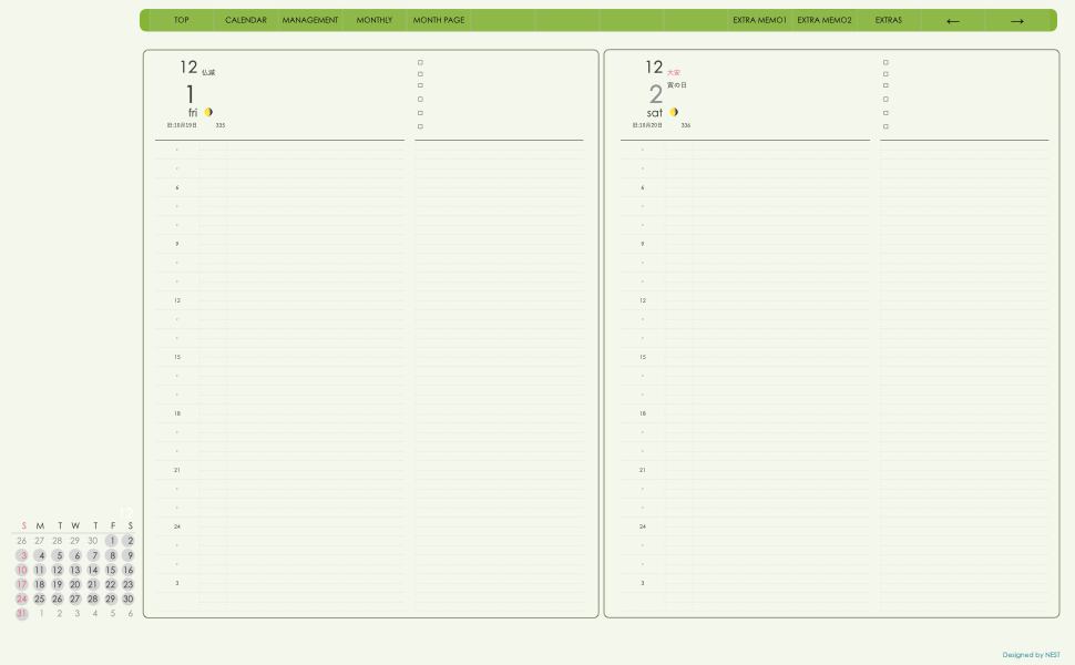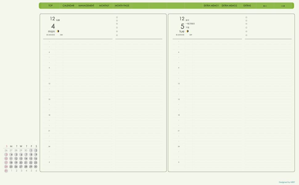 ミニカレンダーの日付の部分を押すとその日付のページへリンクとなり