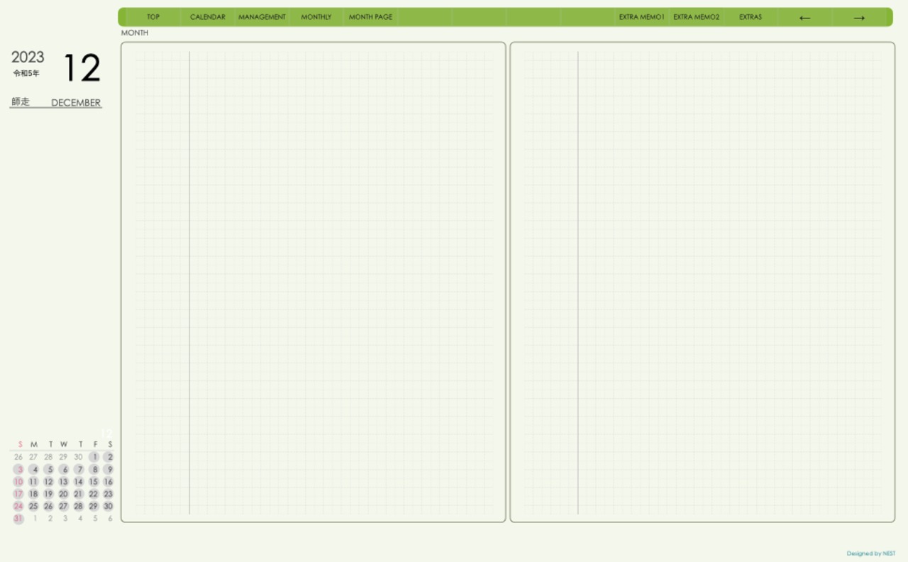 **手帖(dayシリーズ)日曜日始まり2023.12月版**