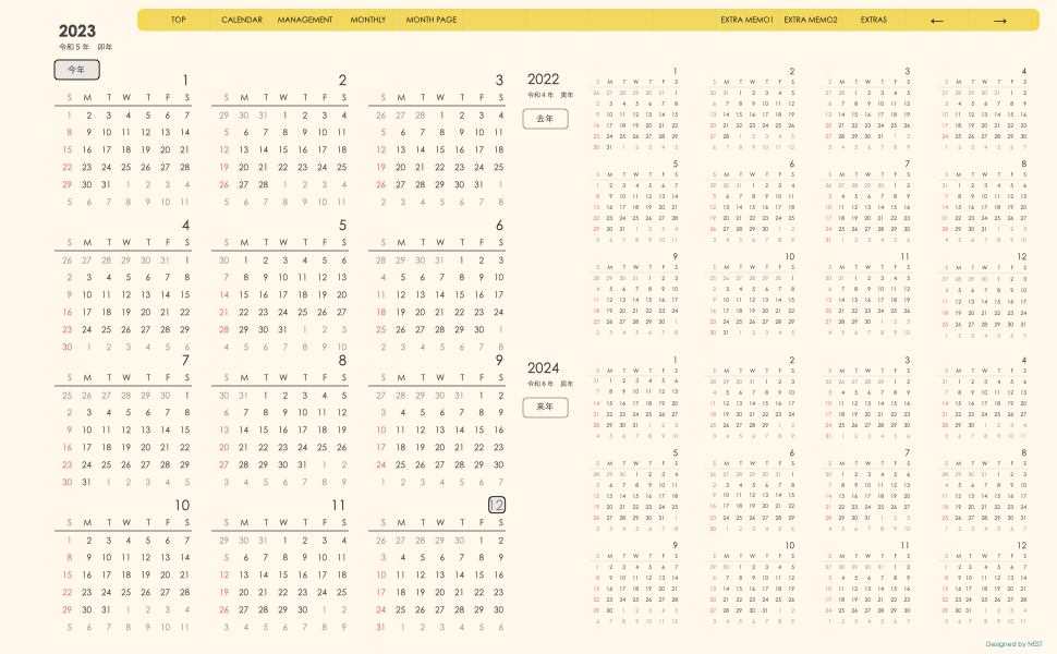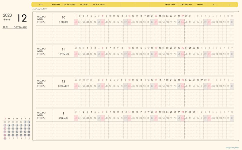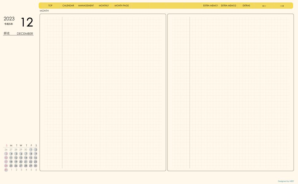 **手帖(dayシリーズ)日曜日始まり2023.12月版**