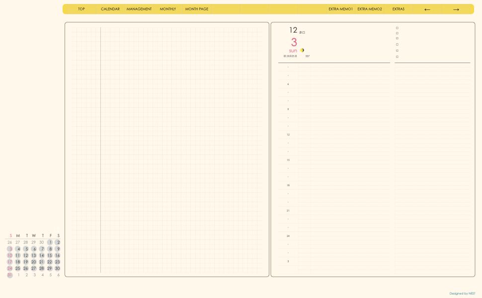 このプランナーは使いやすさにこだわって作られています。直感的な操作性を備えており、簡単に予定を追加したりタスクを管理したりすることができます。また、カスタマイズ性が高いので、自分のスタイルに合わせて表示設定が可能です。
