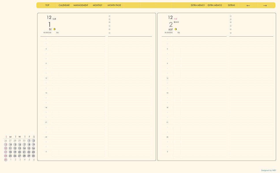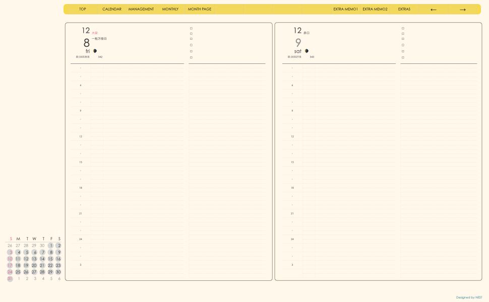 ミニカレンダーの日付の部分を押すとその日付のページへリンクとなり