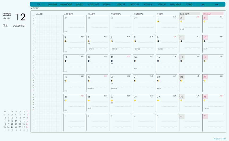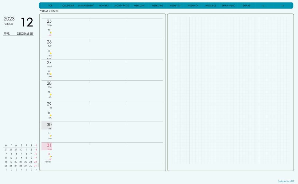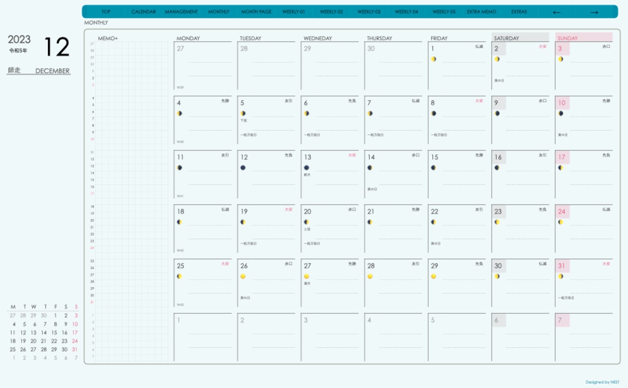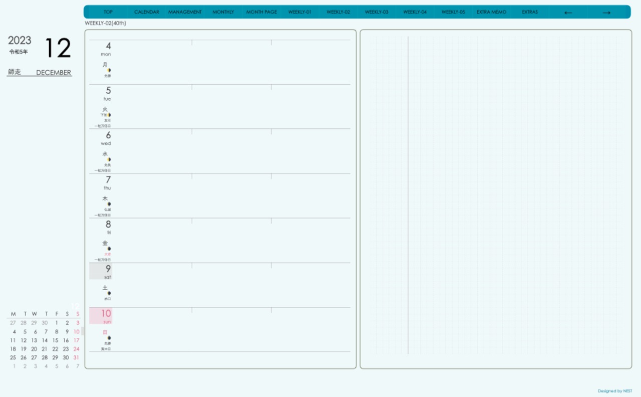 **(week-leftシリーズ)月曜日始まり2023.12月版**の登場!
