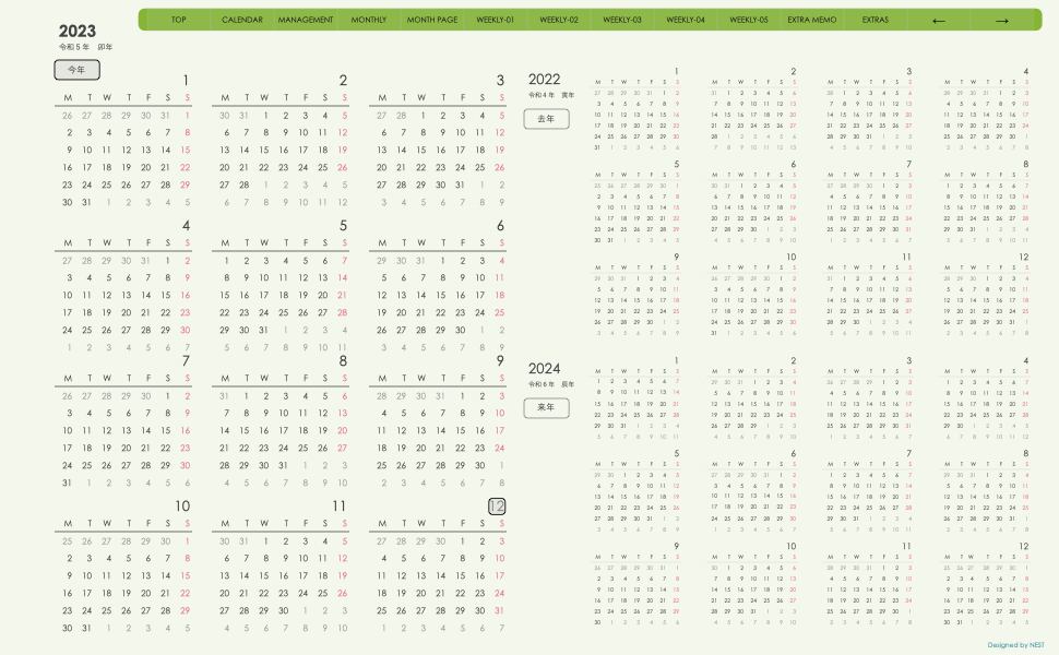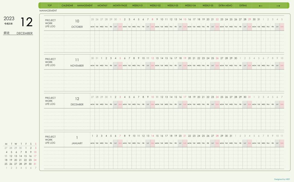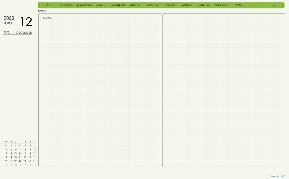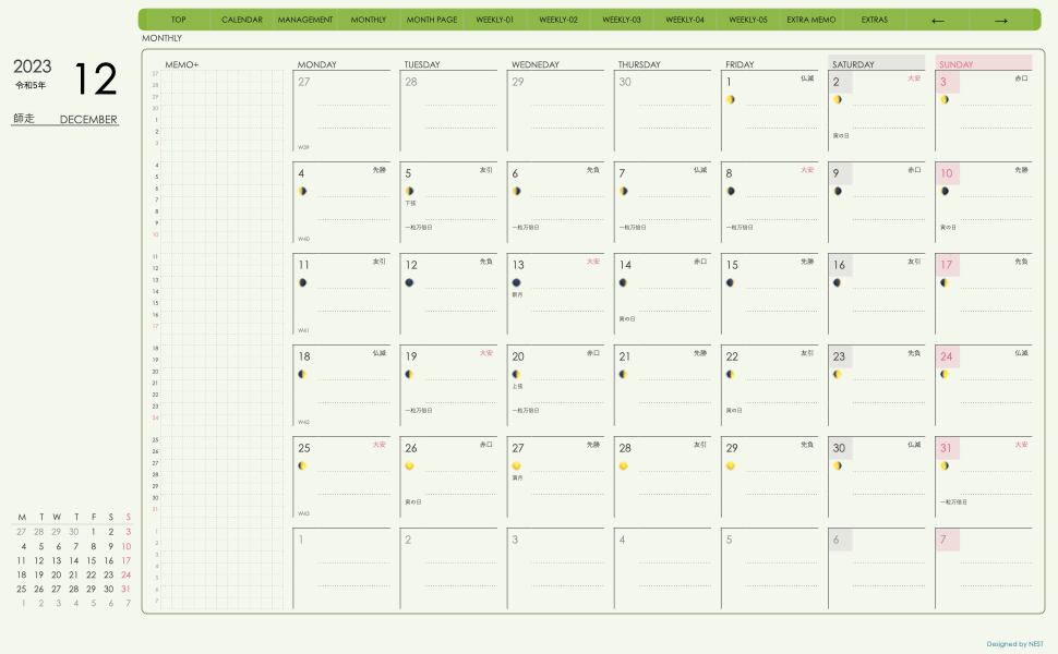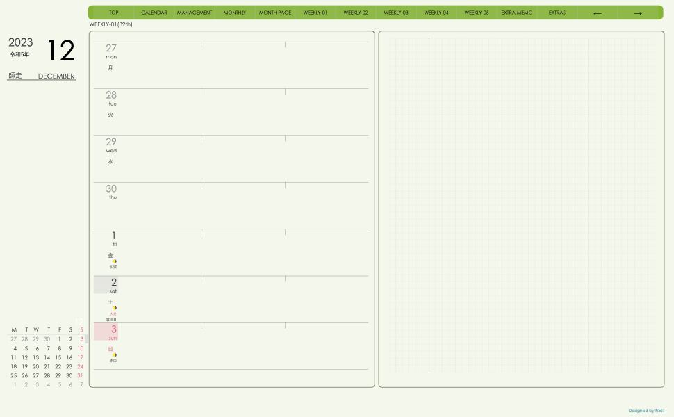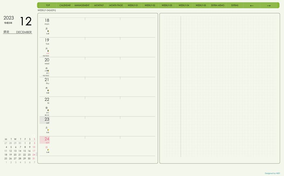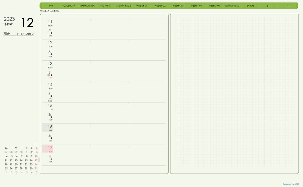 **(week-leftシリーズ)月曜日始まり2023.12月版**の登場!