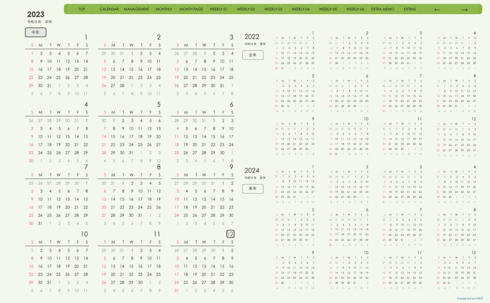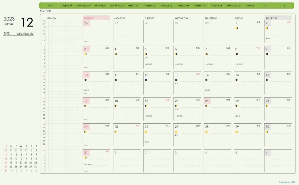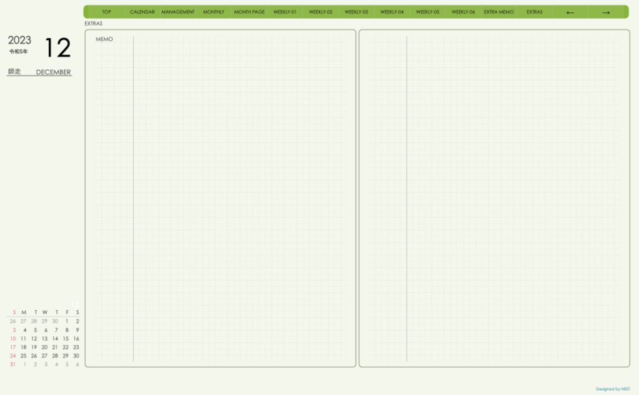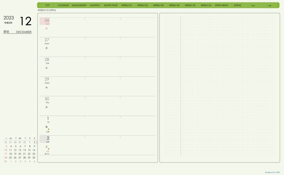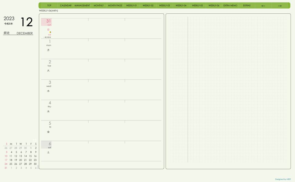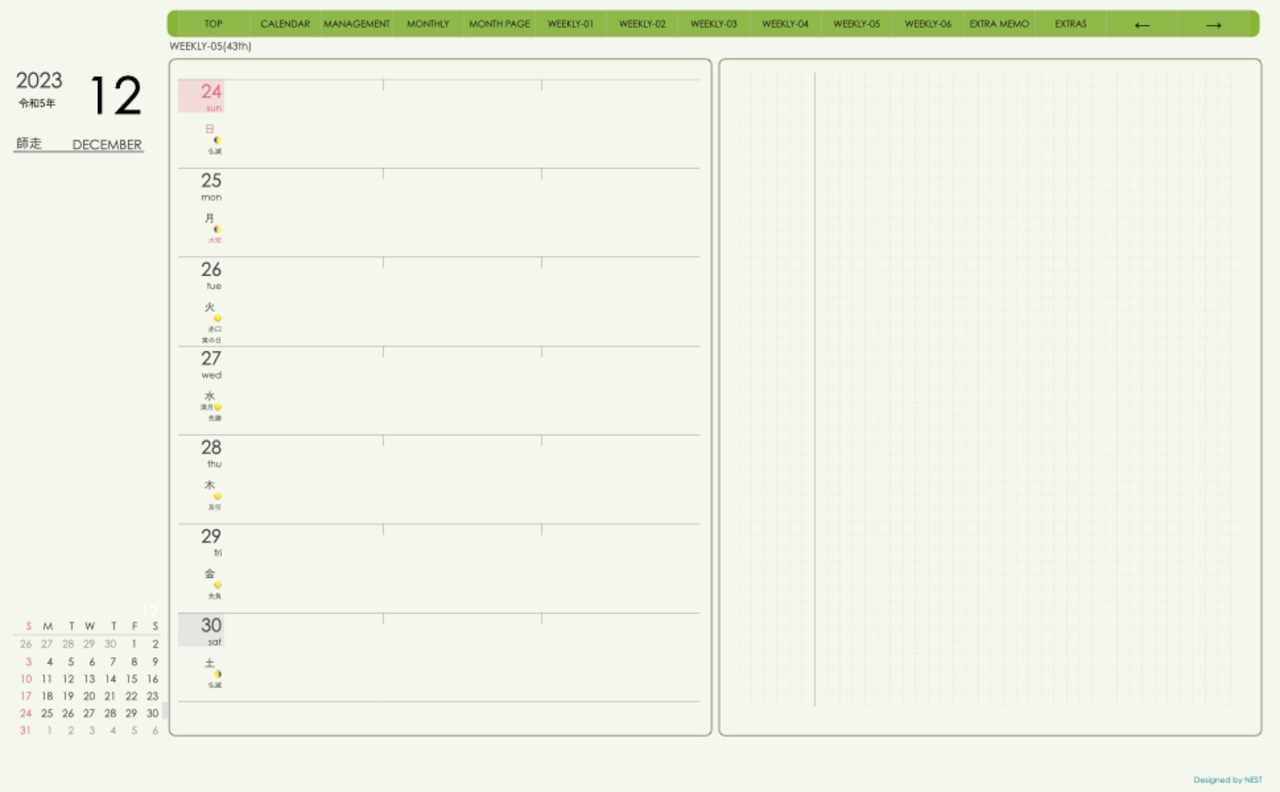 **(week-leftシリーズ)日曜日始まり2023.12月版**の登場!