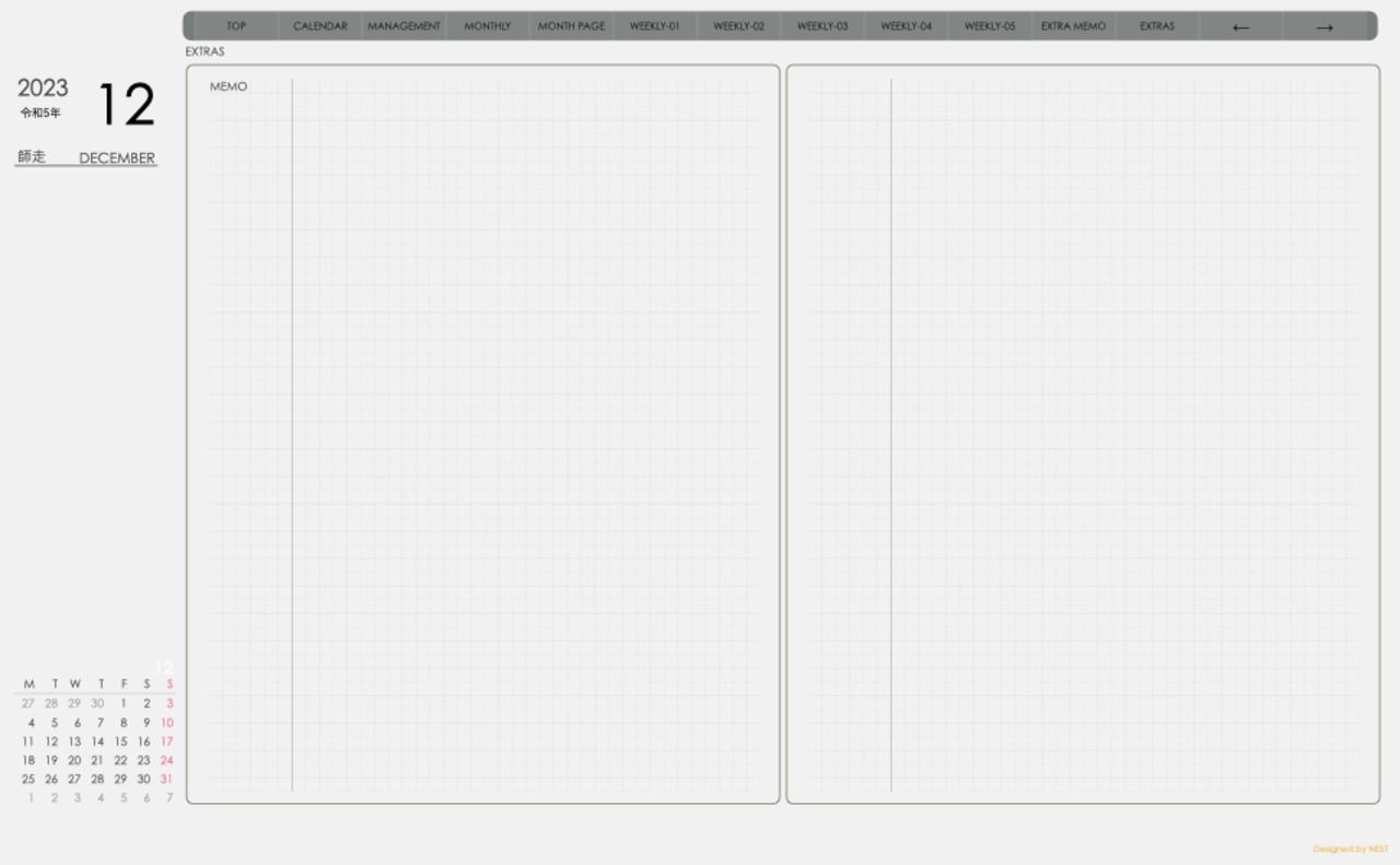 **手帖(week-verticalシリーズ)月曜日始まり2023.12月版**